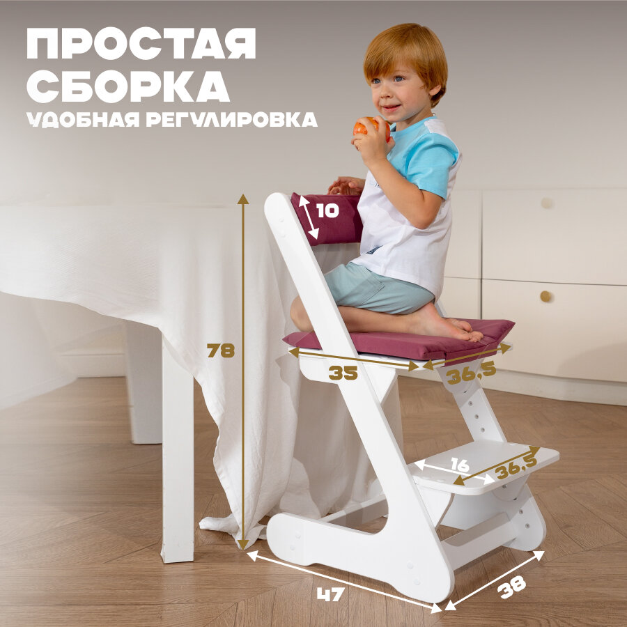Растущий стул РАСТУЛЬЧИК для детей белый с бордовой подушкой 6 973 ₽