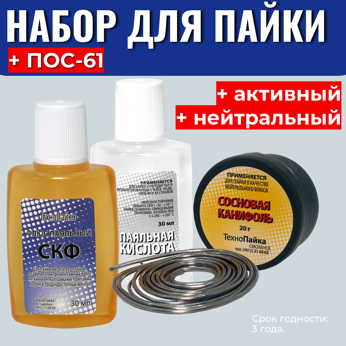 Набор для пайки с флюсами, канифолью и ПОС 61 информация: