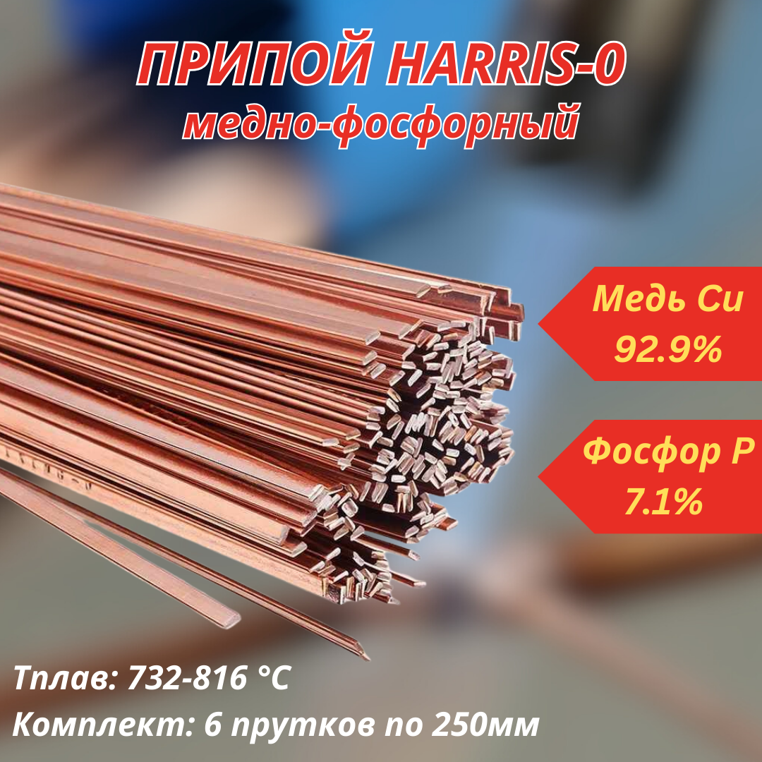 10 цен на (6 шт в комплекте!) HARRIS - 0 пруток 1.3х3.2х250 мм (28-60), припой медно-фосфорный. Для пайки меди и медных труб, латуни и бронзы (У)