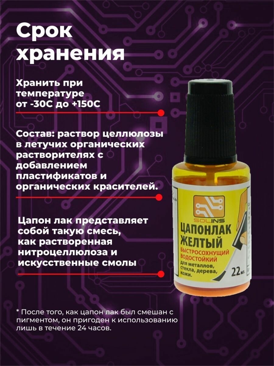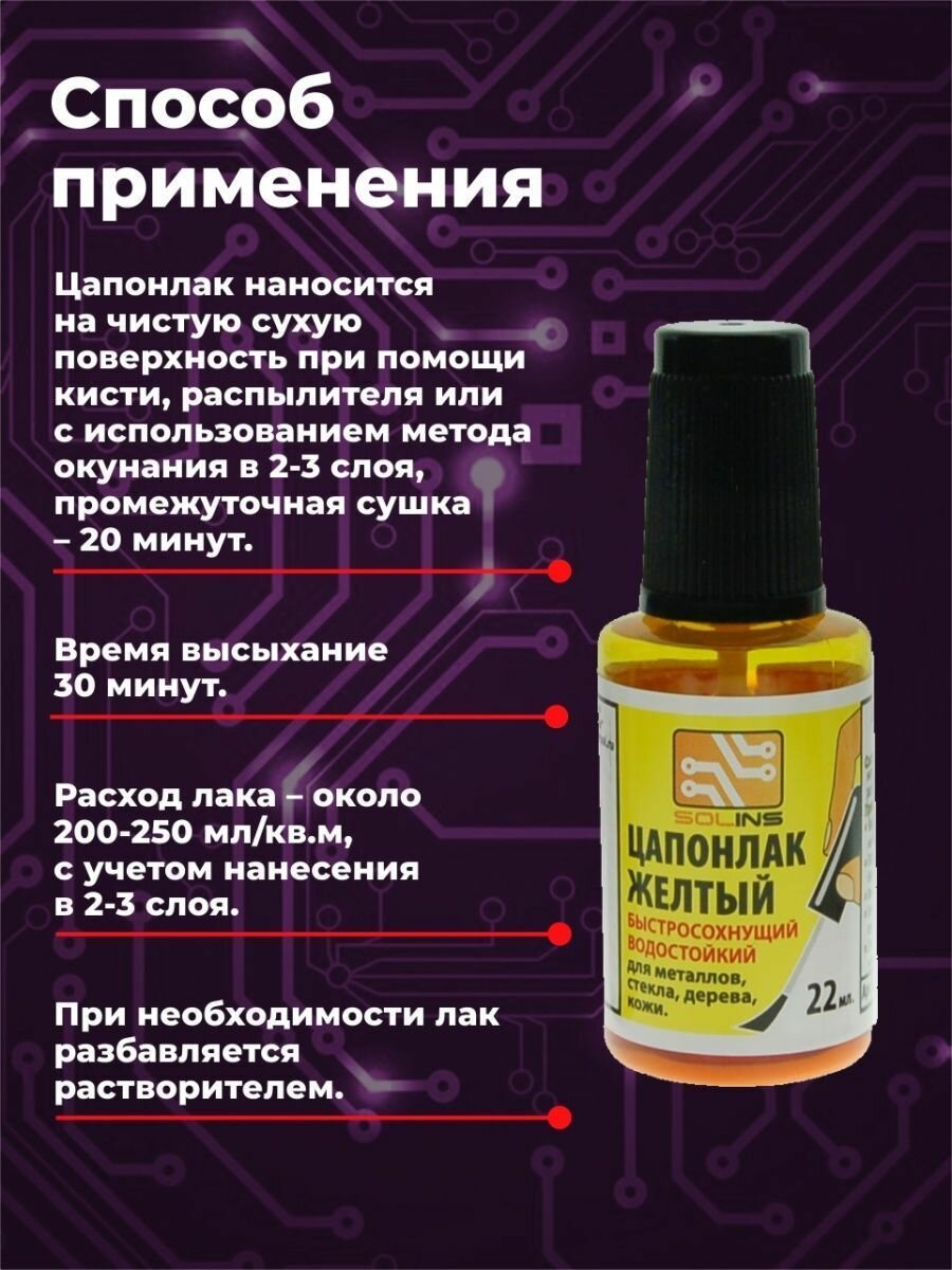 Отзывы на Цапон лак Solins быстросохнущий водостойкий, защитный для металла, стекла ламп, дерева кожи, печатных плат, цапонлак защита от коррозии для наружных и внутренних работ, желтый набор 3 шт. по 22 мл