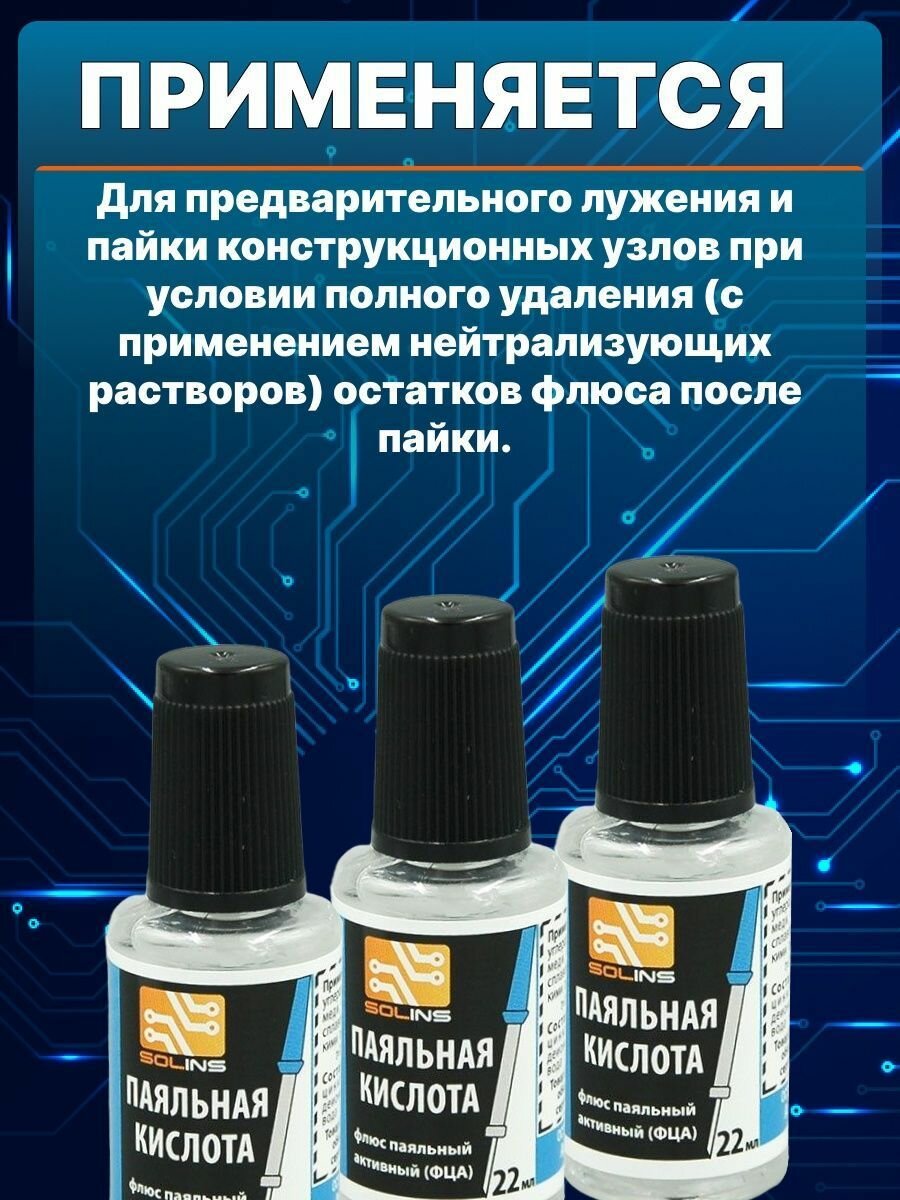 10 цен на Паяльная кислота Solins ФЦА, активный флюс для пайки меди, стали, никеля, флакон с кисточкой, набор 3 шт. по 22 мл