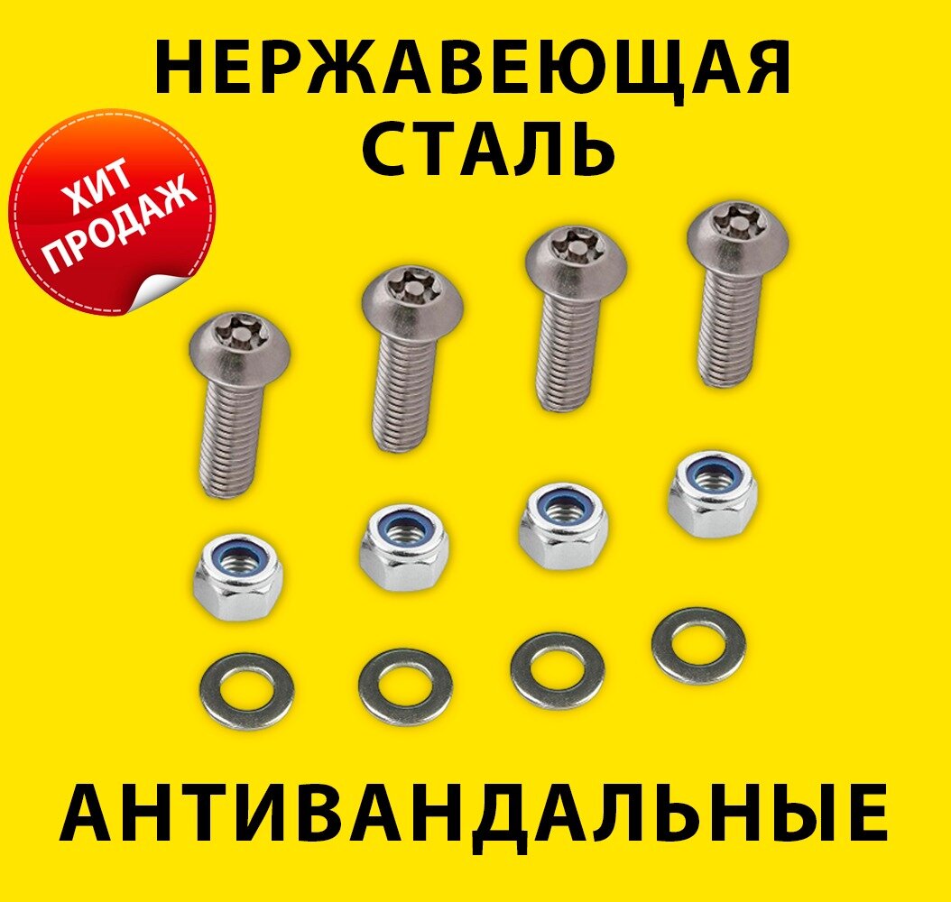 Отзывы на Винты антивандальные (4шт.) болт звезда М6х10 с гайкой и шайбой DIN9121 секретные M6 ART 9121 для крепления гос номера авто к рамке