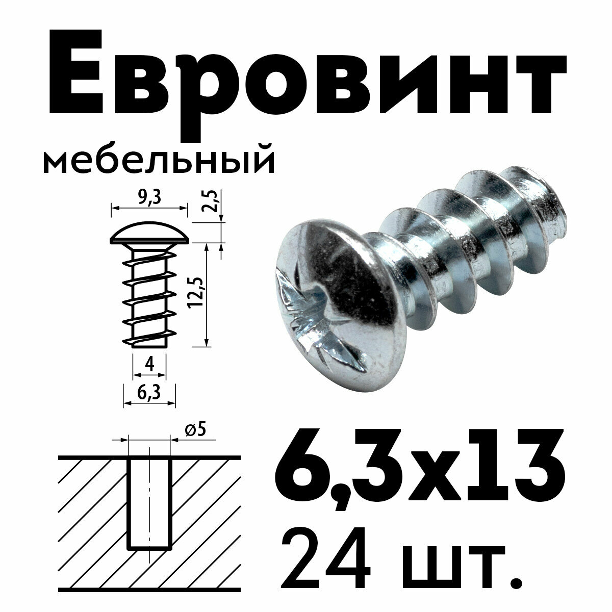Евровинт еврошуруп 6,3х13, 24 шт., полукруглая головка информация: