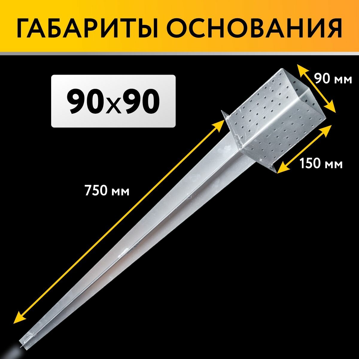 Забивное основание столба 90х90х150 750 мм, крепеж для стоек в землю информация: