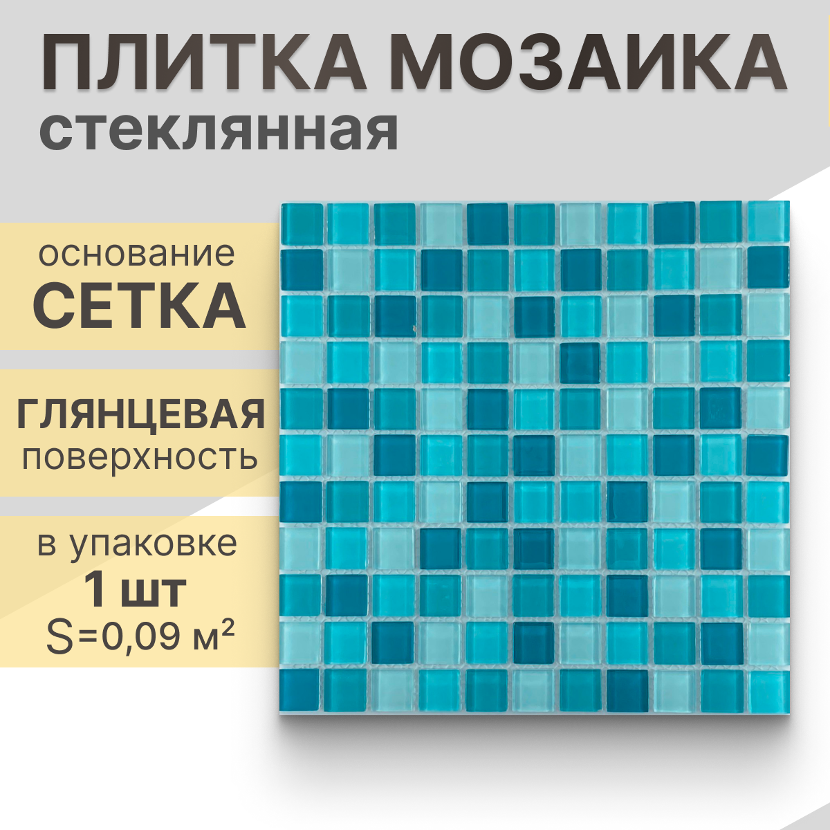 Мозаика Natural STP-BL014 из глянцевого стекла размер 31.5х31.5 см чип 25x25 мм толщ. 5 мм площадь 0.099 м2 на сетке