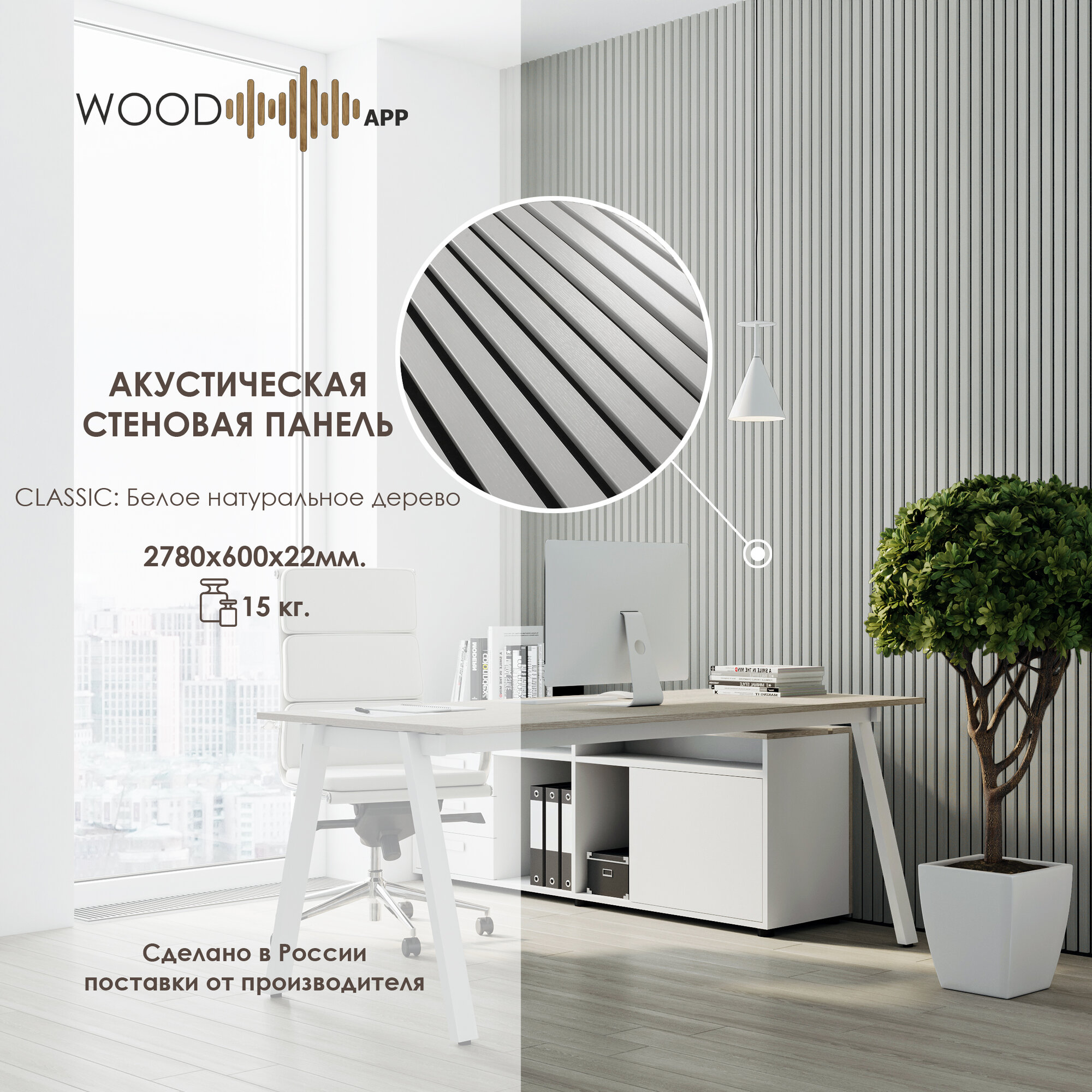 Акустическая декоративная панель Wood App Classic Белое натуральное дерево информация: