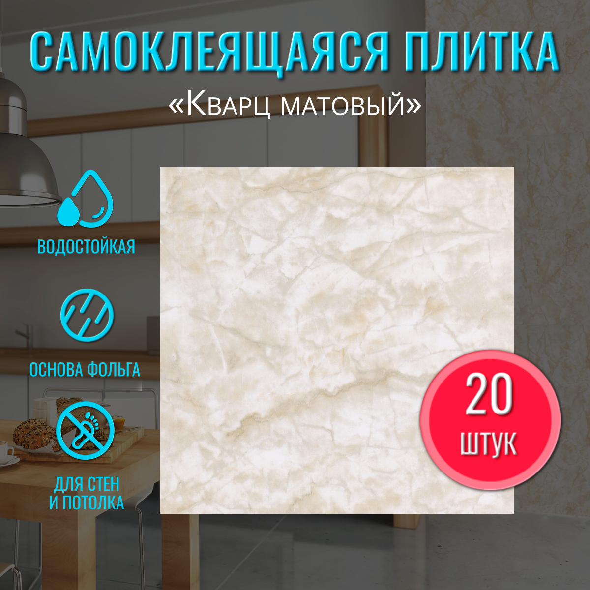 Самоклеящиеся влагостойкие панели на стену и пол "Кварц матовый" 30х30 см 20 шт. самоклеющаяся панель декор на стену вместо кухонного фартука информация: