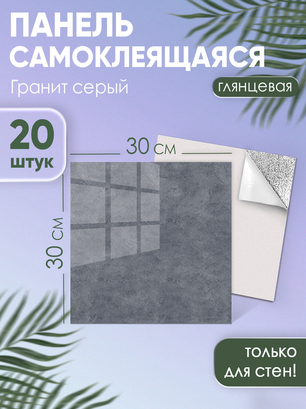 10 цен на Самоклеящиеся панели на стену "Гранит серый" 30х30 см ПВХ плитка для ванной и кухни 20 шт.