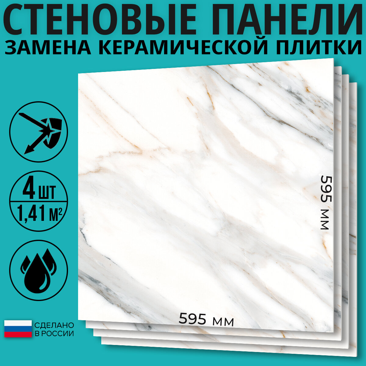 Стеновая панель ПВХ "Каррара", 59,5x59,5см, 4 шт. информация: