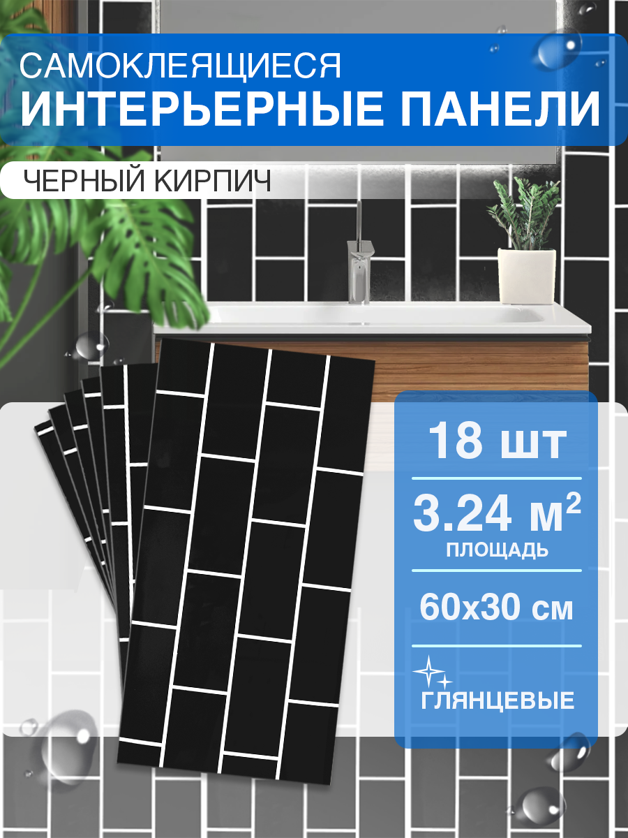 10 цен на Самоклеящиеся панели ПВХ. Плитка для стен. Черный кирпич 18 шт