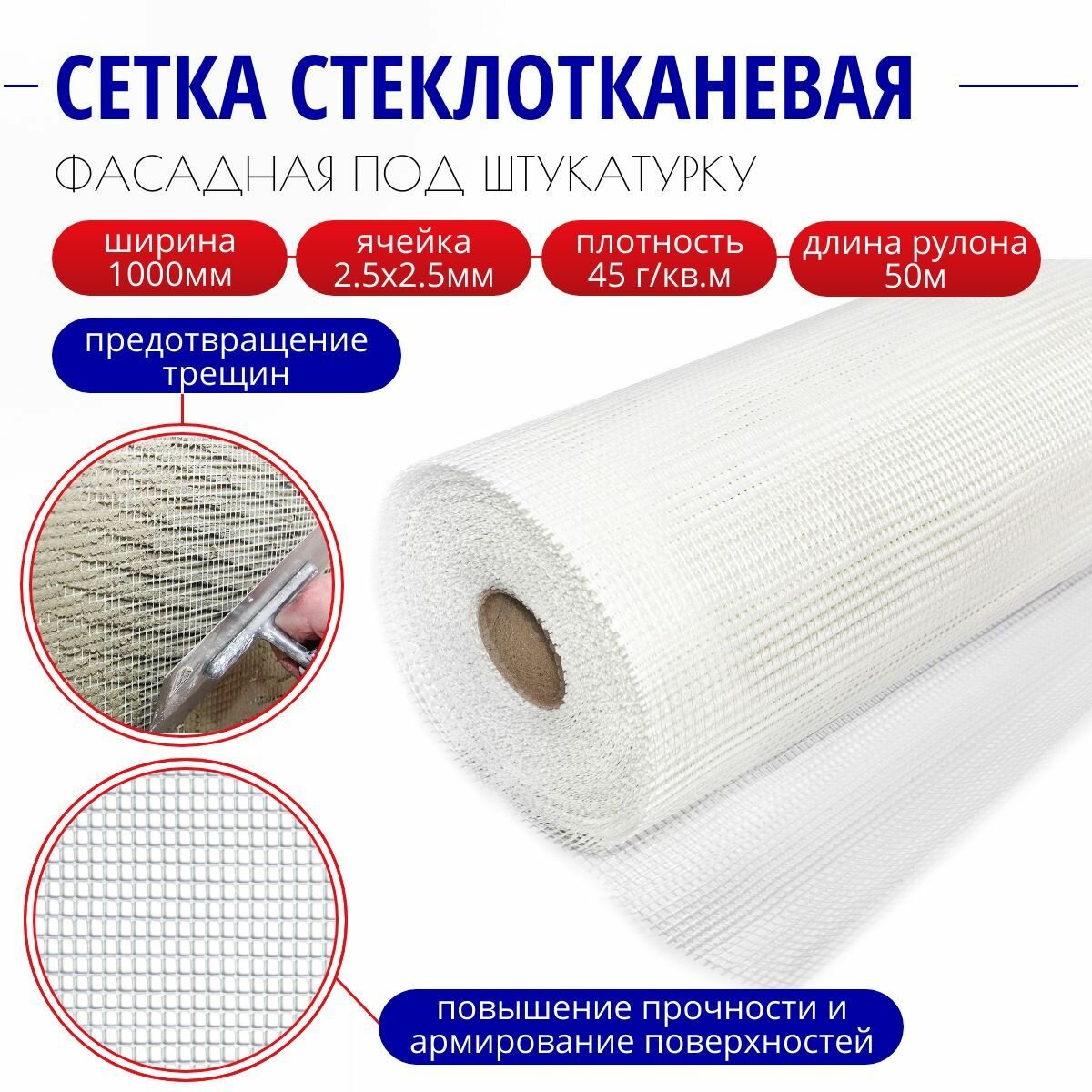 Ремоколор Professional Сетка стеклотканевая малярная 2,5х2,5мм, 45г/кв.м., 1м х 50м, (шт.) информация: