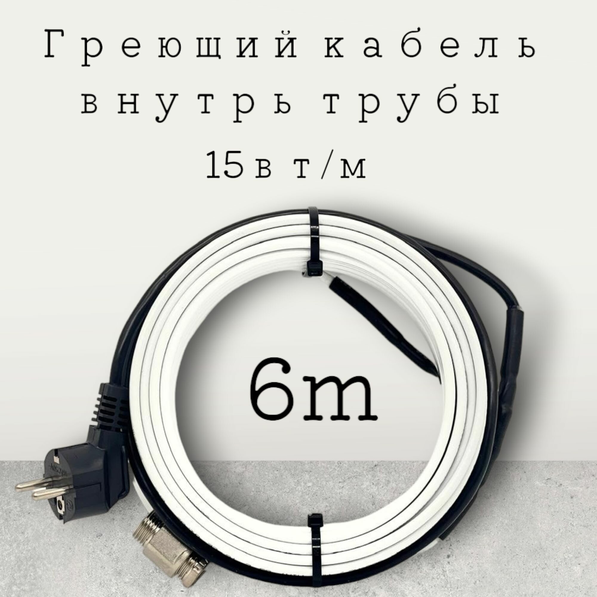 Греющий кабель обогрев люкс Греющий саморегулирующийся кабель в трубу 6 метров Обогрев Люкс с сальником
