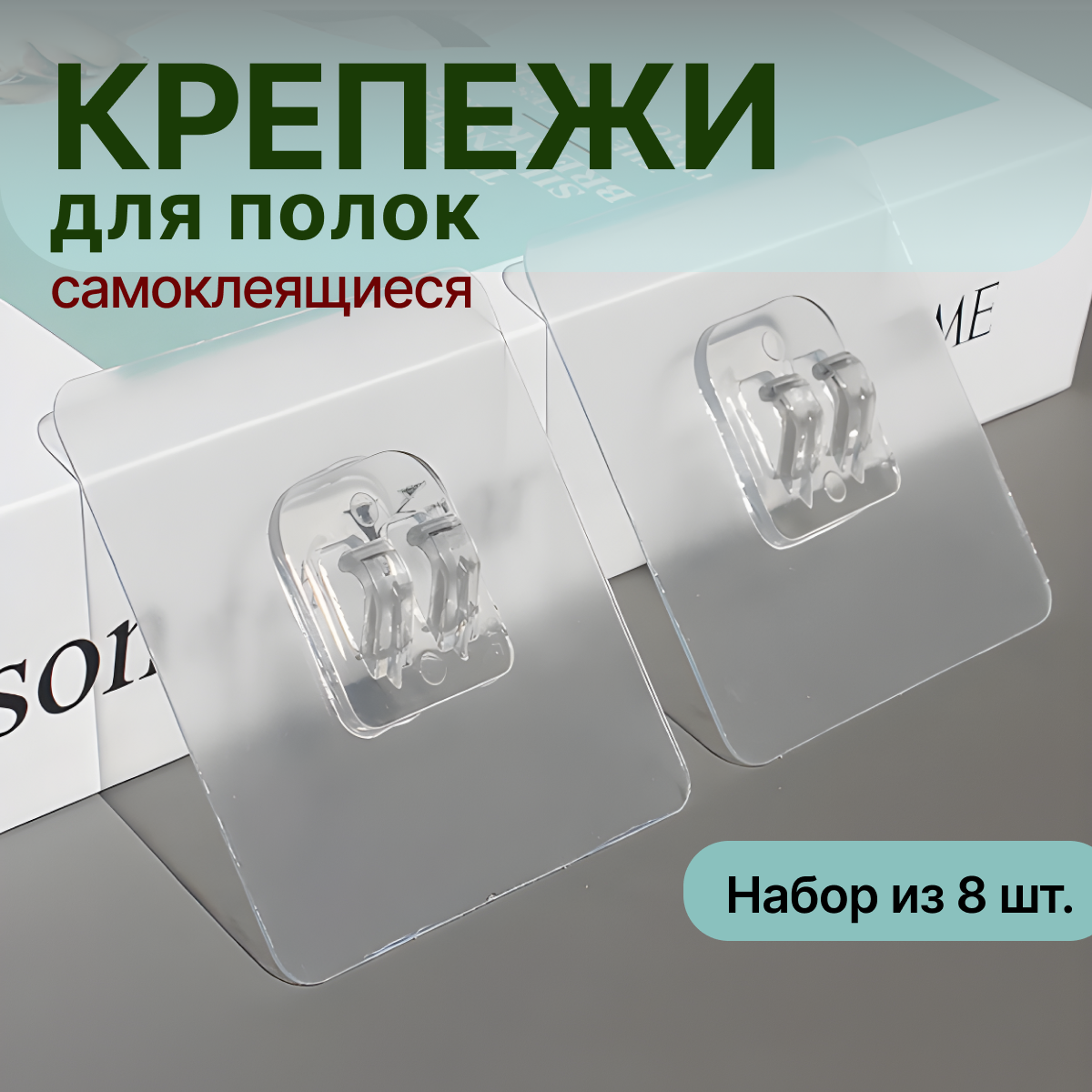 Крепление для навесных полок, крючки самоклеящиеся, крепление на стену без сверления , крючки для полок; в комплекте 8 шт. информация: