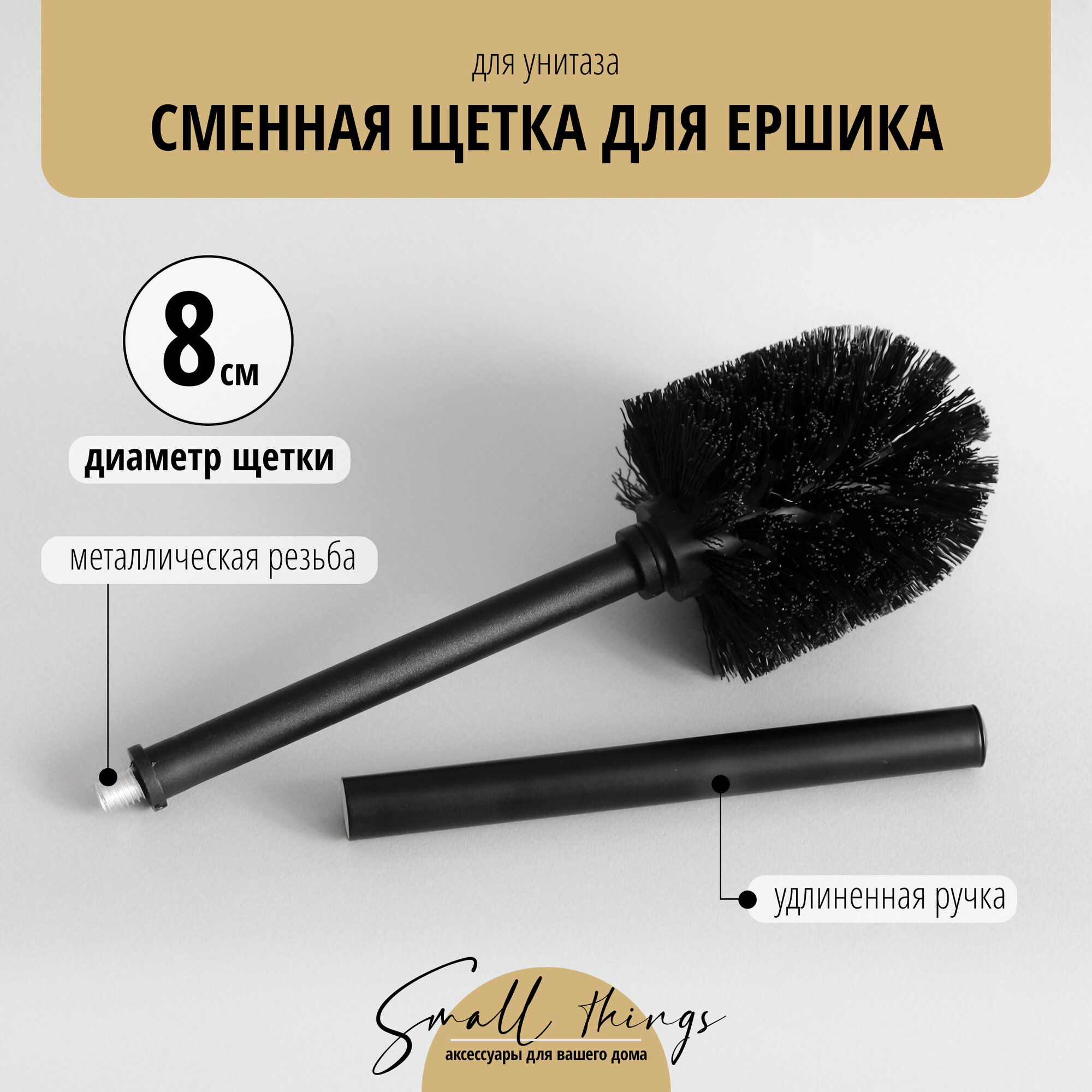 Отзывы на Сменная насадка (щетка) 8 см с ручкой для ёршика для унитаза, черная, 1 шт.