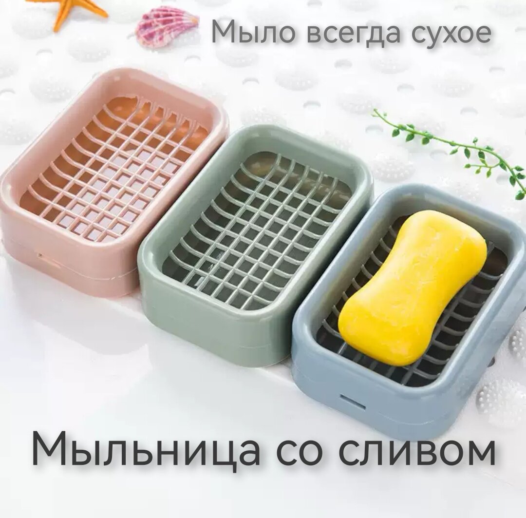 Мыльница со сливом оливковая, пластиковая, с двойным решетчатым дном 248 ₽