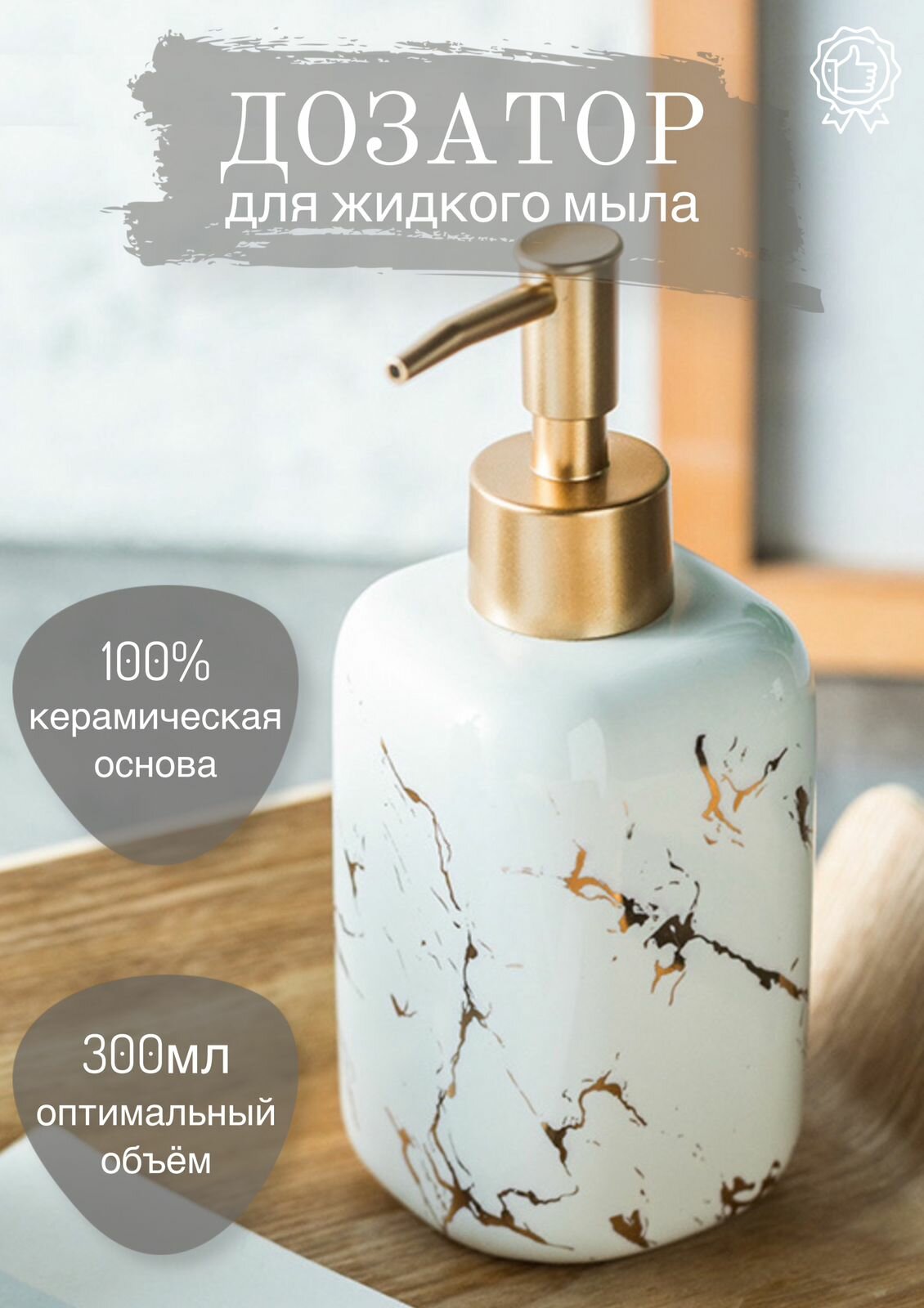 Отзывы на Дозатор для жидкого мыла "Marble Deluxe Line" 300 мл с мраморным принтом/ Дозатор для моющего средства