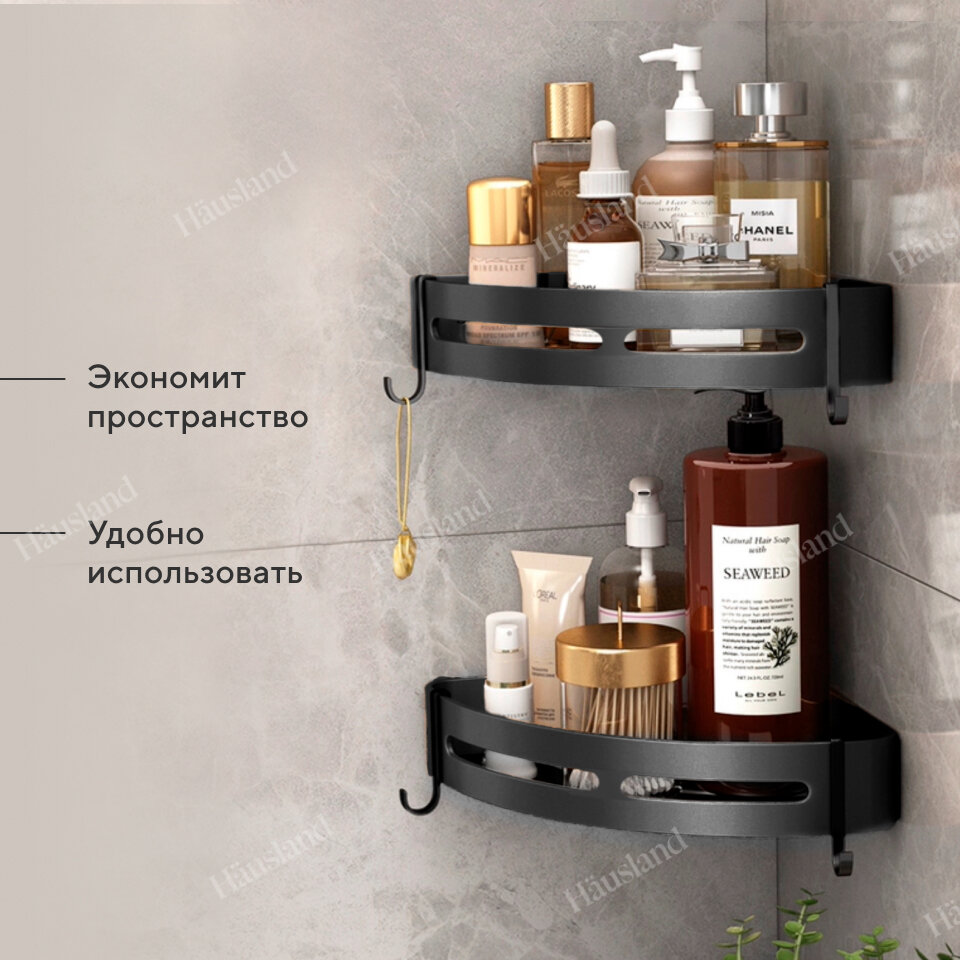 Полка для ванной без сверления угловая 2 шт, черный информация: