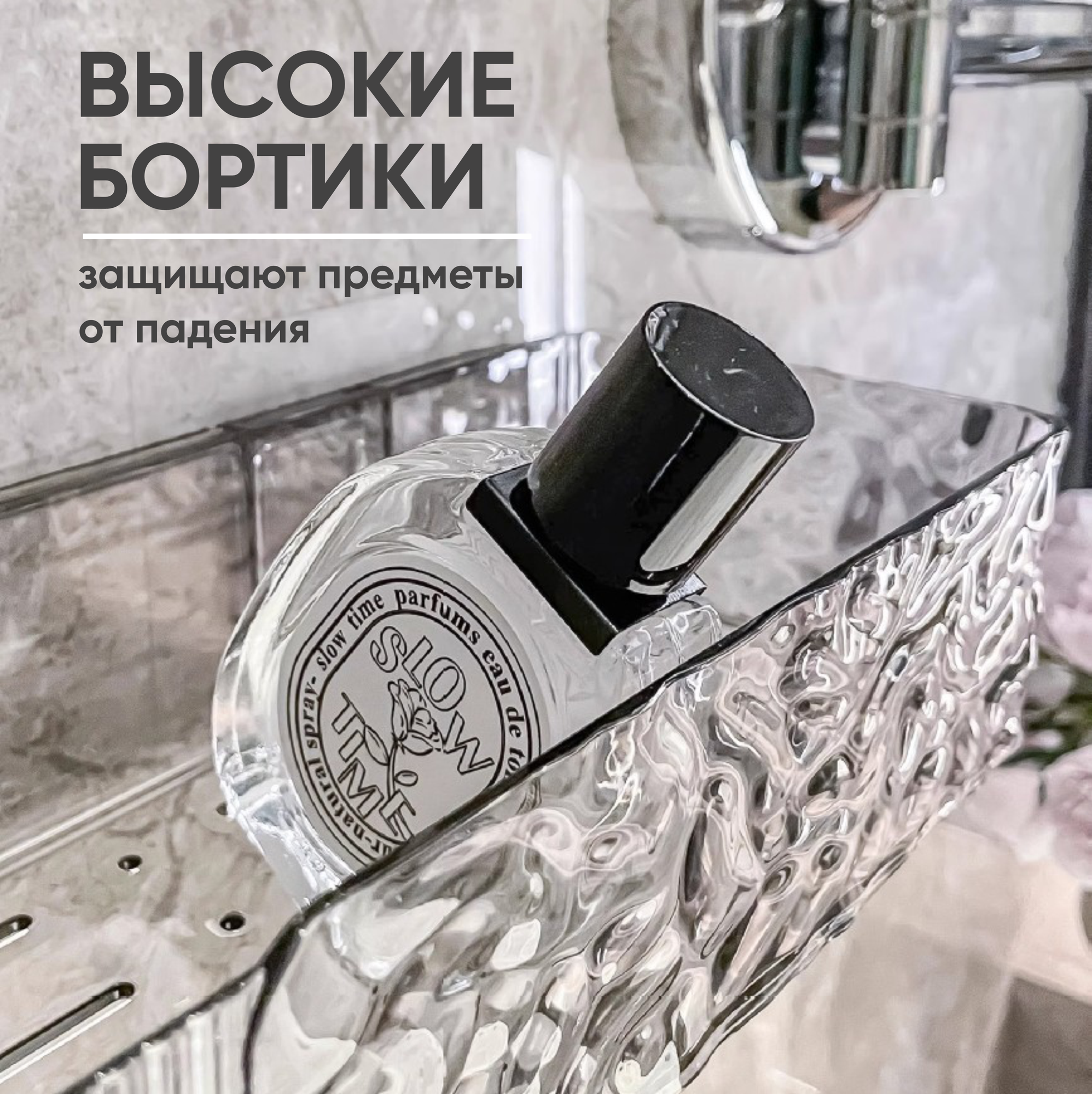 Полка для ванной без сверления навесная настенная клеящаяся в душевую кабину прозрачная 2шт информация: