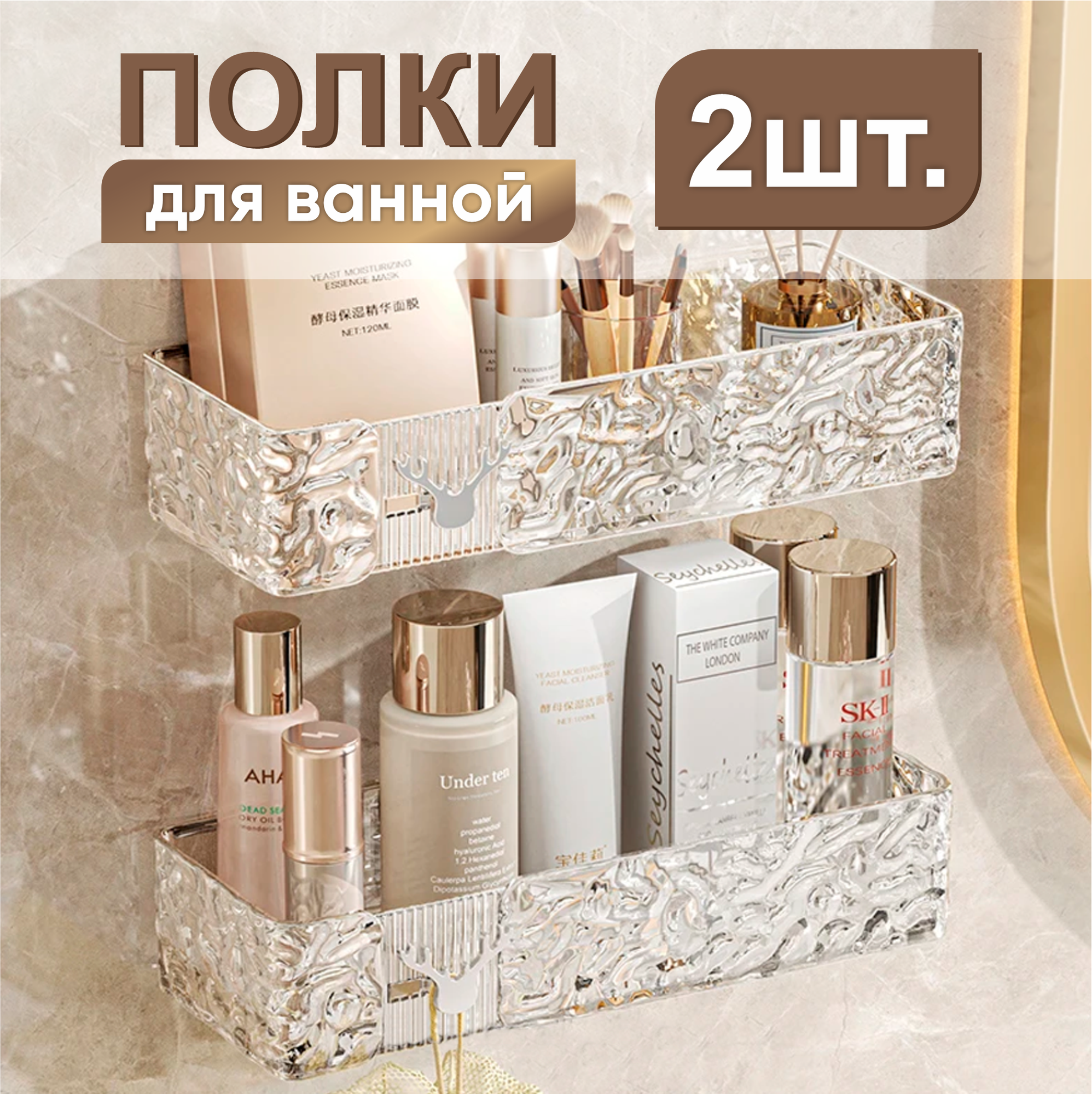 10 цен на Полка для ванной без сверления навесная настенная клеящаяся в душевую кабину прозрачная 2шт