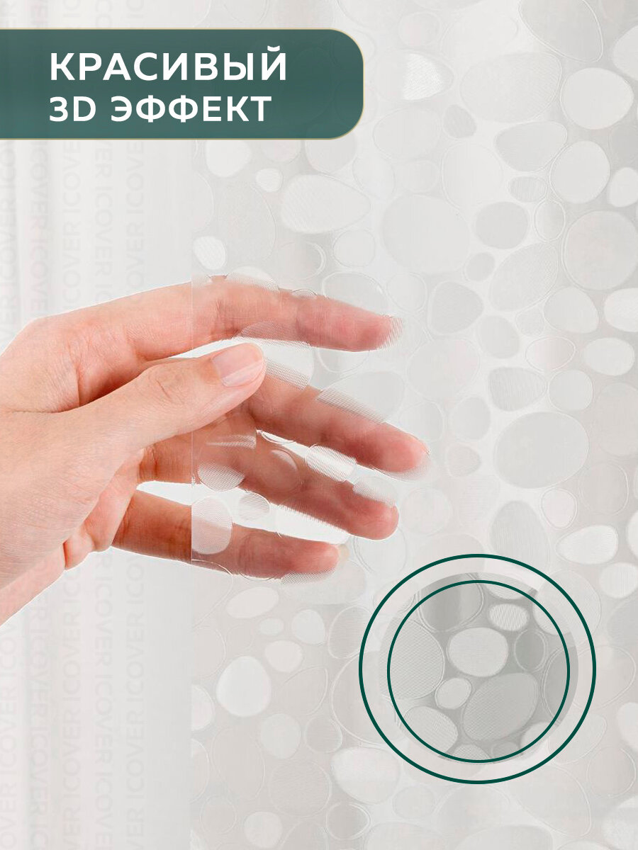 Штора для ванной Ridberg Ракушка PEVA 180х200 см, с кольцами / шторка для душа водоотталкивающая информация: