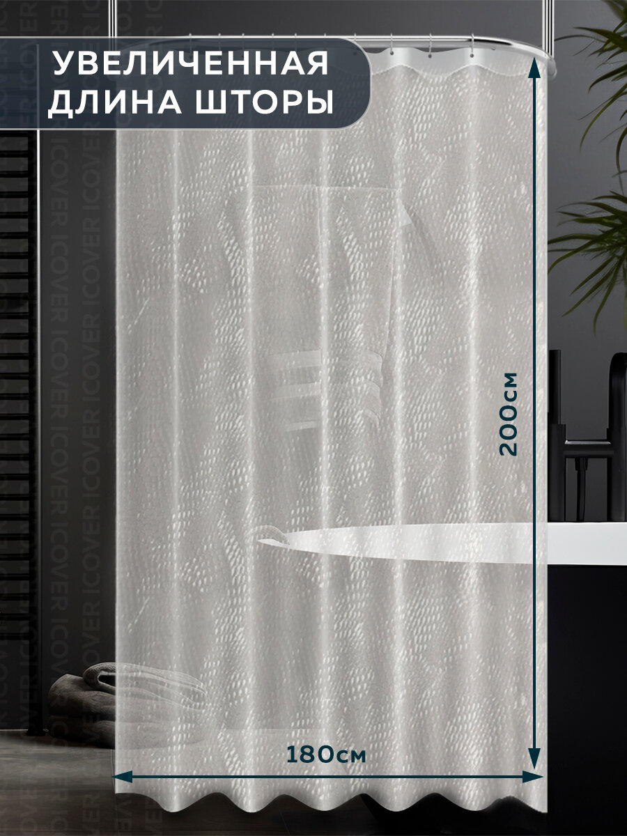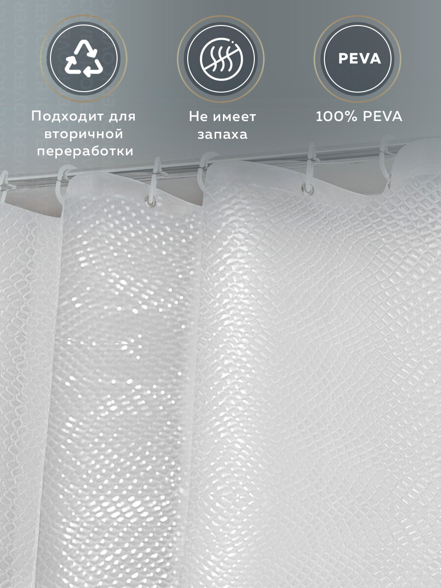 Штора для ванной Ridberg Кожа PEVA 180х200 см, с кольцами / шторка для душа водоотталкивающая информация: