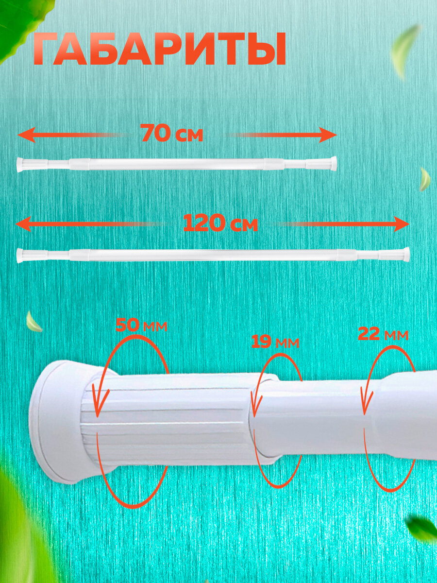 Карниз для ванной телескопический раздвижной белый Ridberg 70-120 см / Штанга для душа распорная информация: