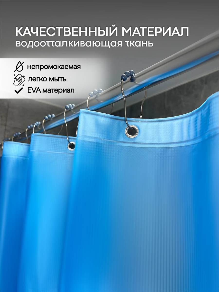 Штора для ванной занавеска водонепроницаемая 3D шторка для душа в ванную 180х200 штора с кольцами