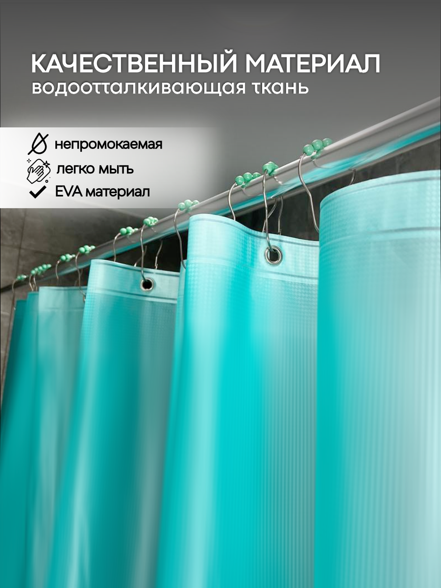 Штора для ванной занавеска водонепроницаемая 3D шторка для душа в ванную 180х200 штора с кольцами