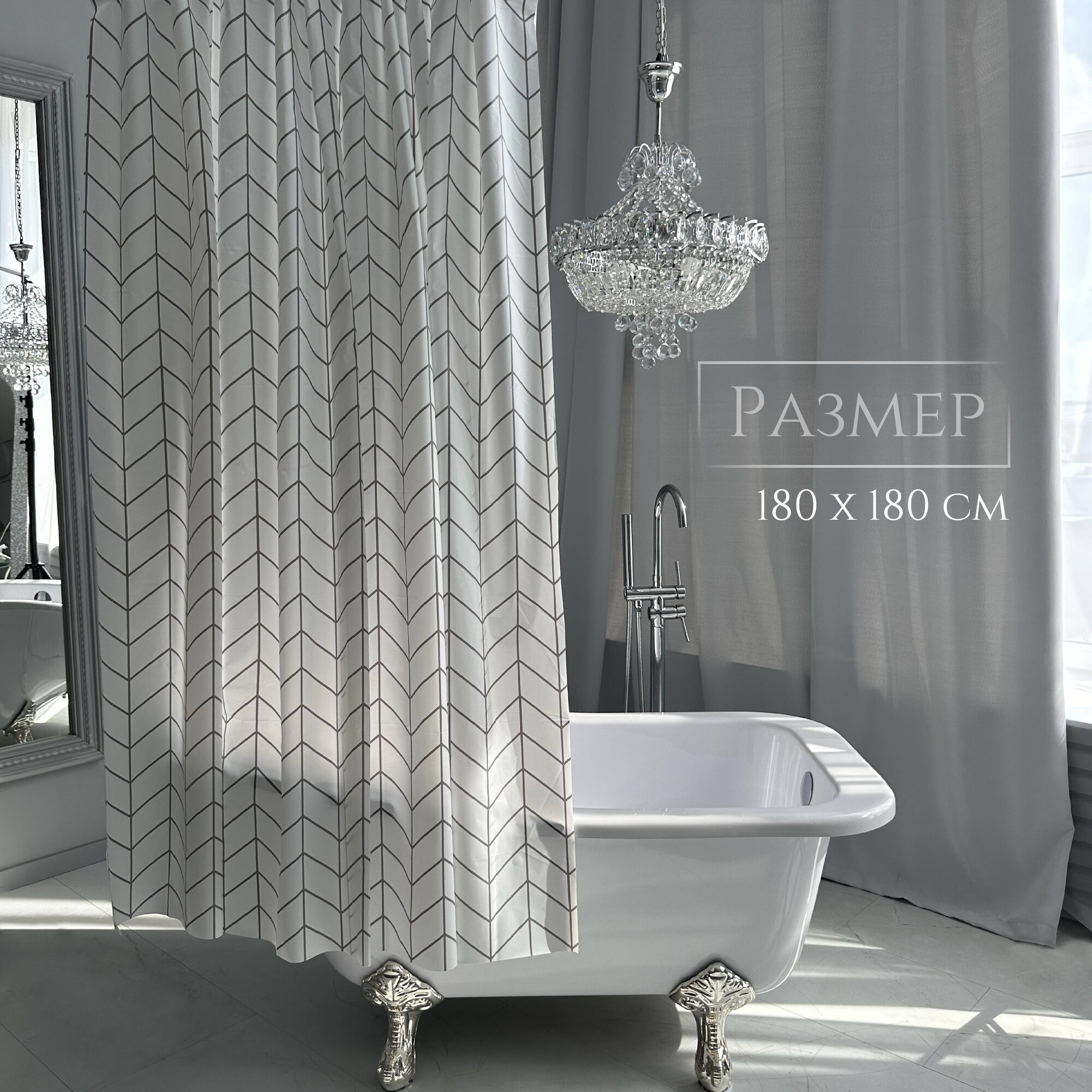 Штора для ванной, белая матовая занавеска душевая водонепроницаемая 180х180 с люверсами и кольцами Rocco Home информация: