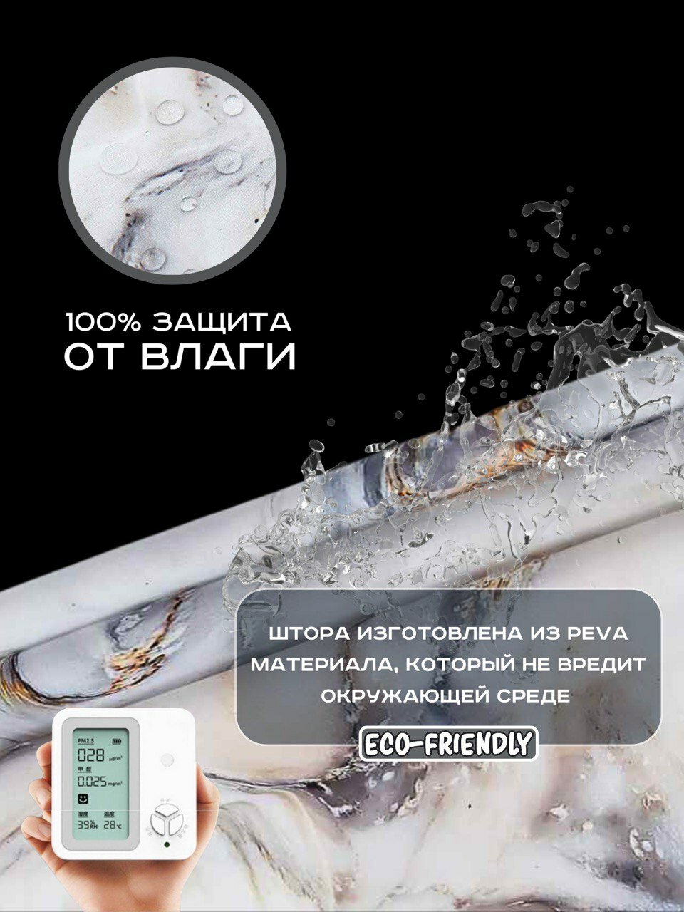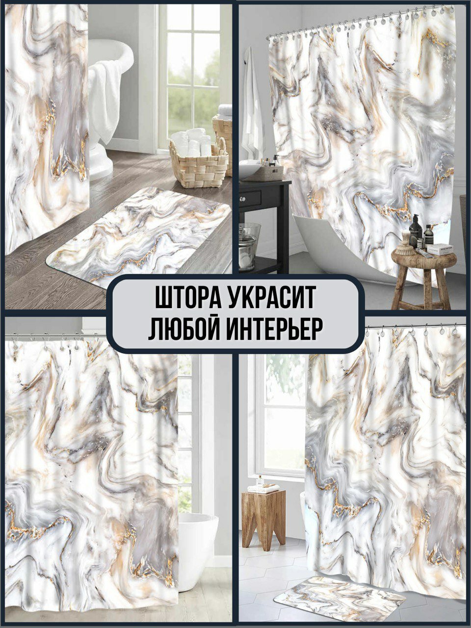 Штора для ванной занавеска водонепроницаемая 3D шторка для душа в ванную 180х200 штора с кольцами