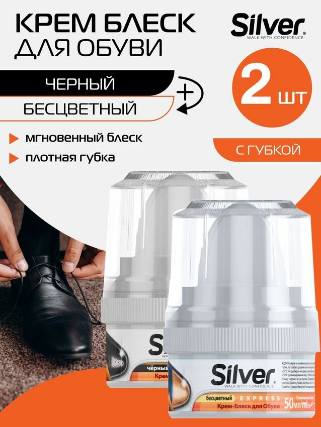 SILVER набор крем для обуви черный и бесцветный, обувной крем информация:
