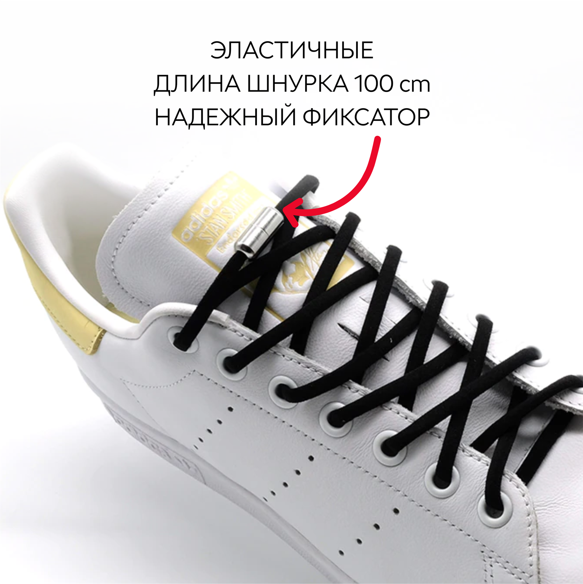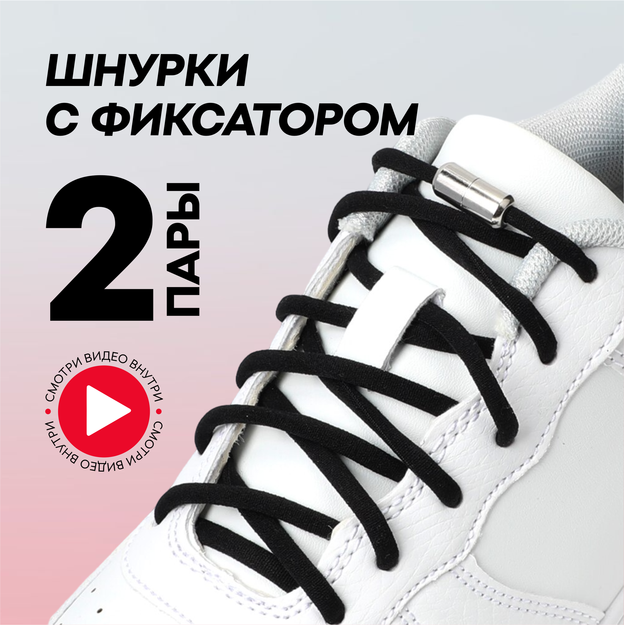 Отзывы на Чёрные шнурки для обуви, шнурки эластичные с фиксатором без завязок для кроссовок. 2 пары