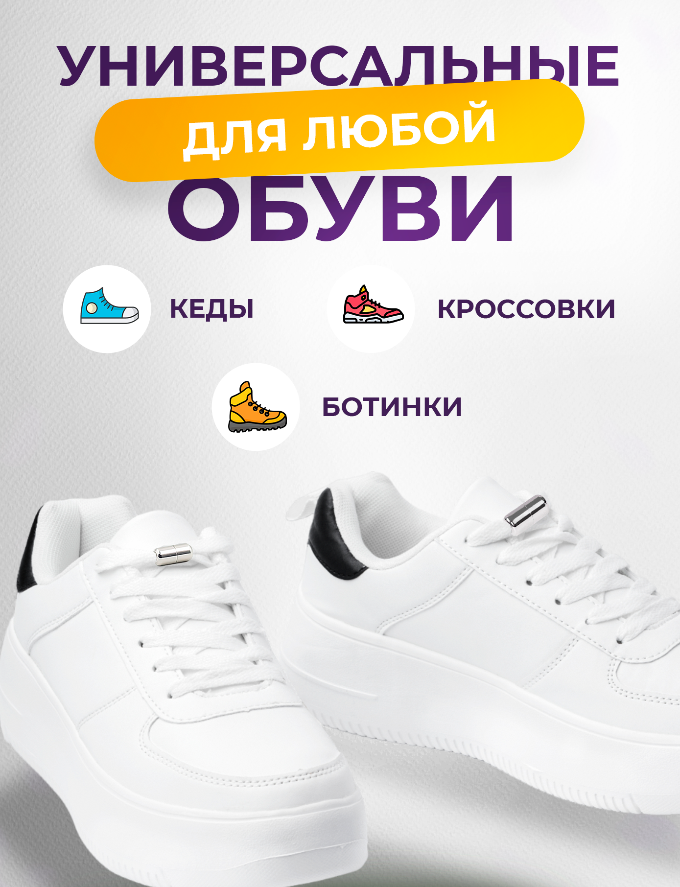 Белые шнурки для обуви, шнурки эластичные с фиксатором без завязок для кроссовок. 2 пары 199 ₽