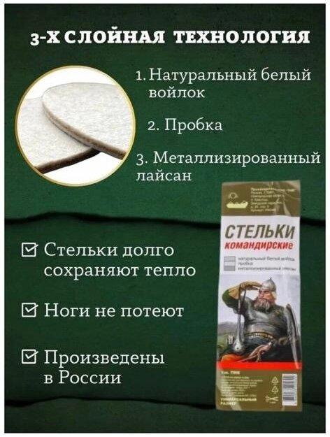 10 цен на Стельки для обуви зимние "Командирские" Натуральный белый войлок, пробка, металлизированный лавсан, универсальный размер 35-45