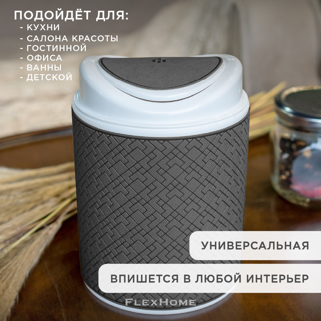 Отзывы на Настольный контейнер для мусора FlexHome, 1 л, цвет темно-серый
