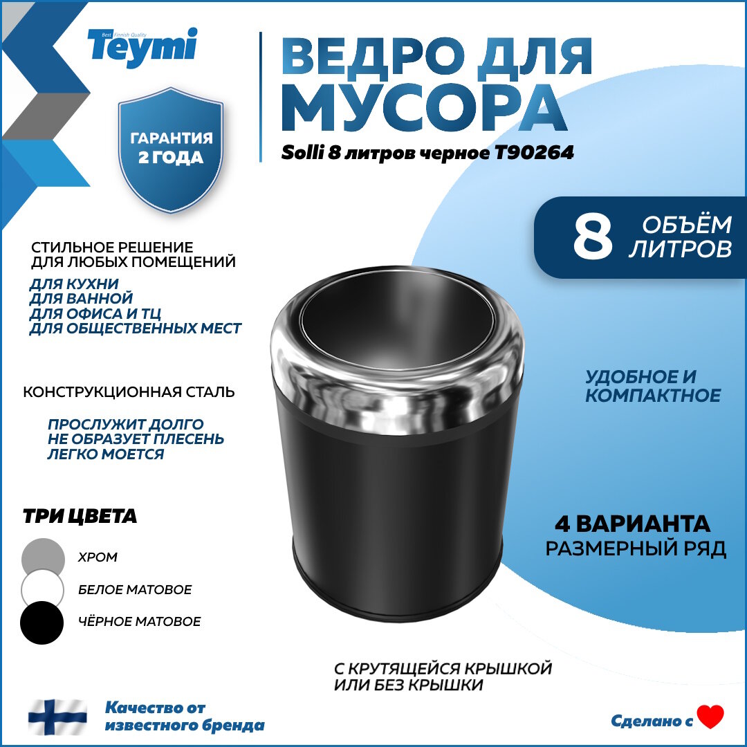 Ведро для мусора с крутящейся крышкой Teymi Solli, 8 литров, черное T90264 информация: