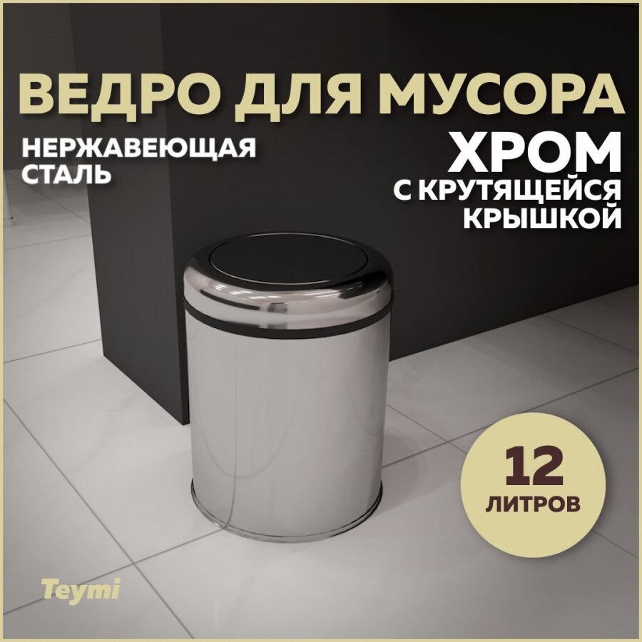 Ведро для мусора с крутящейся крышкой Teymi Solli, 12 литров, хром T90255 информация: