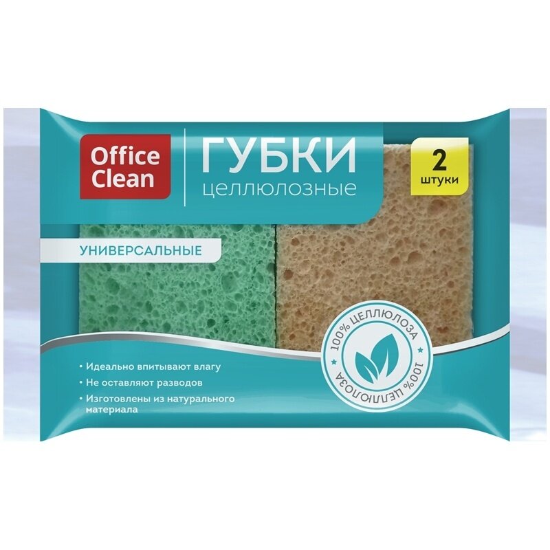 10 цен на Губки бытовые OfficeClean, целлюлозные (губчатые), для посуды и уборки, 9,5*6,5*2см, 2шт.