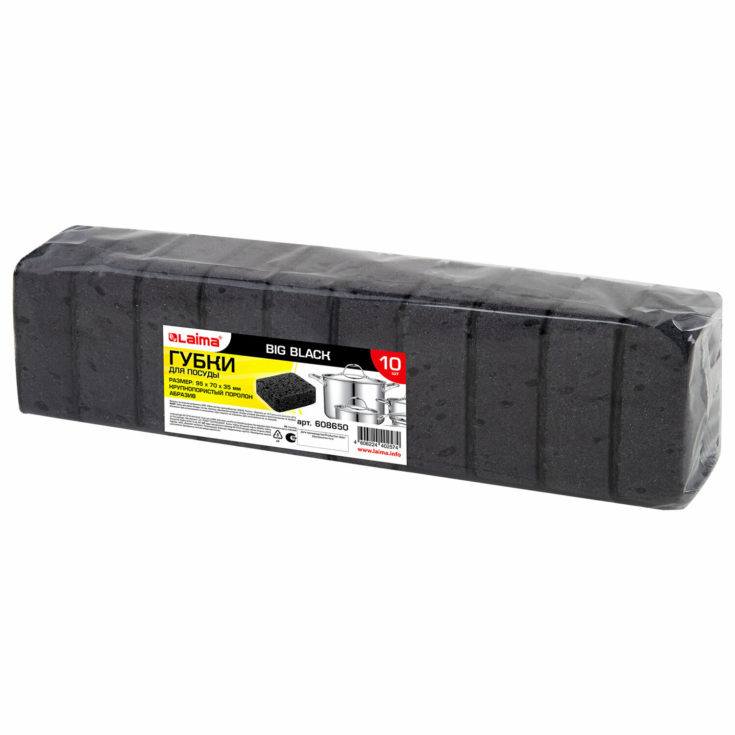 Губки для посуды черные, для кухни, ванны и дома бытовые хозяйственные Big Black 95х70х35 мм Комплект 10 штук, Крупнопористый поролон/абразив Laima информация: