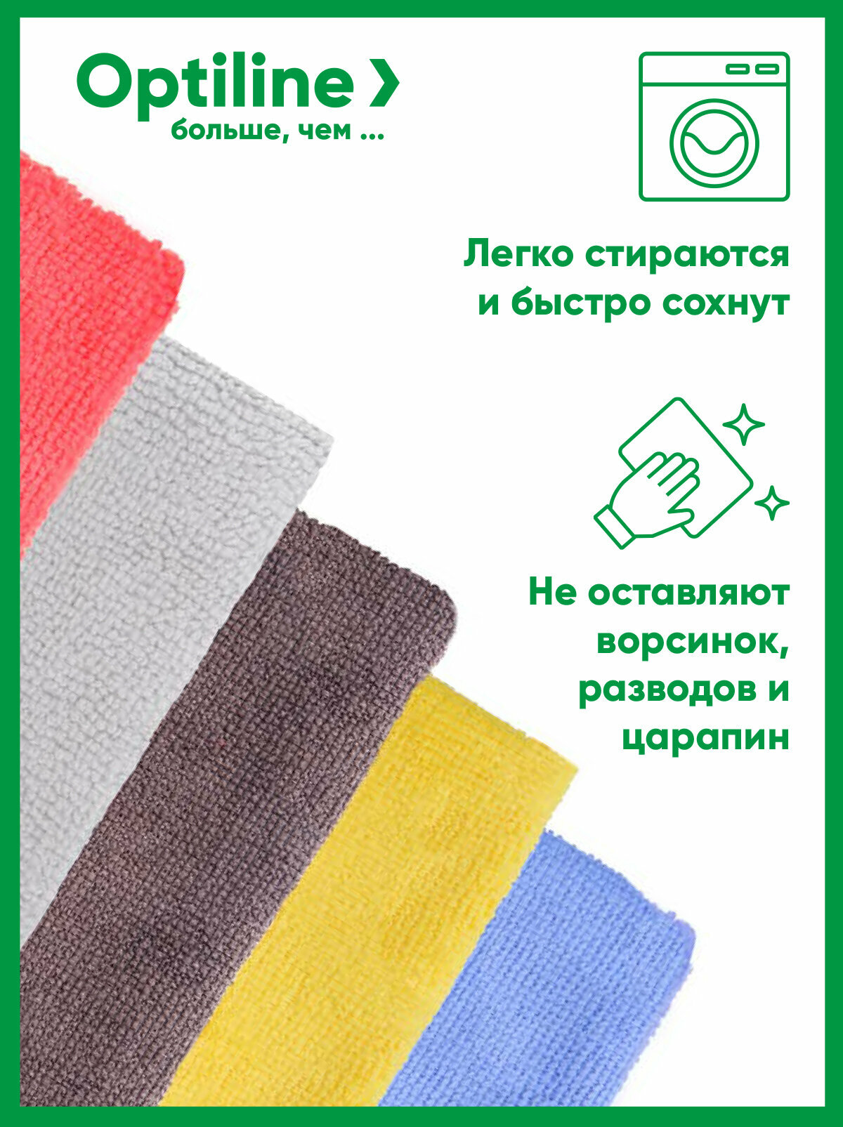 10 цен на Салфетки для уборки из микрофибры 5 шт, 220 гр, 40*40 см + салфетка для стекол 270 гр, 40*40 см, Optiline