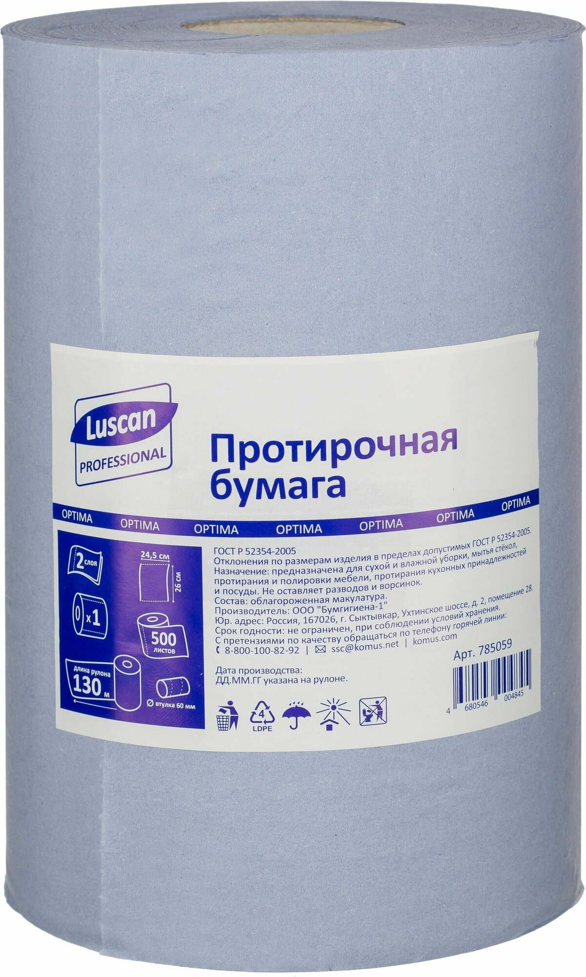 Протирочная бумага Luscan Professional в рулоне, 2 слоя, 130 метров, 500 листов информация: