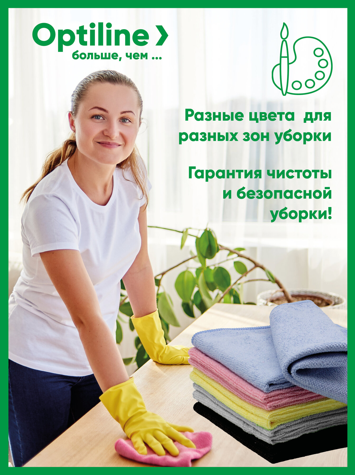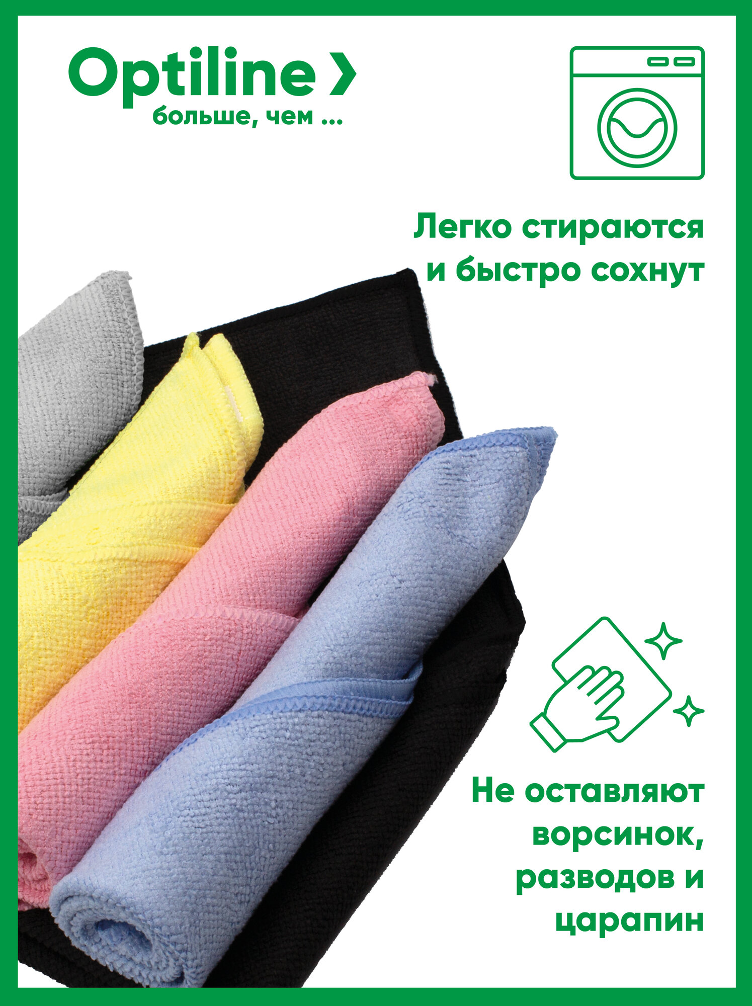 10 цен на Салфетки для уборки из микрофибры 5 шт, 220 гр, 40*40 см, 5 цветов, Optiline