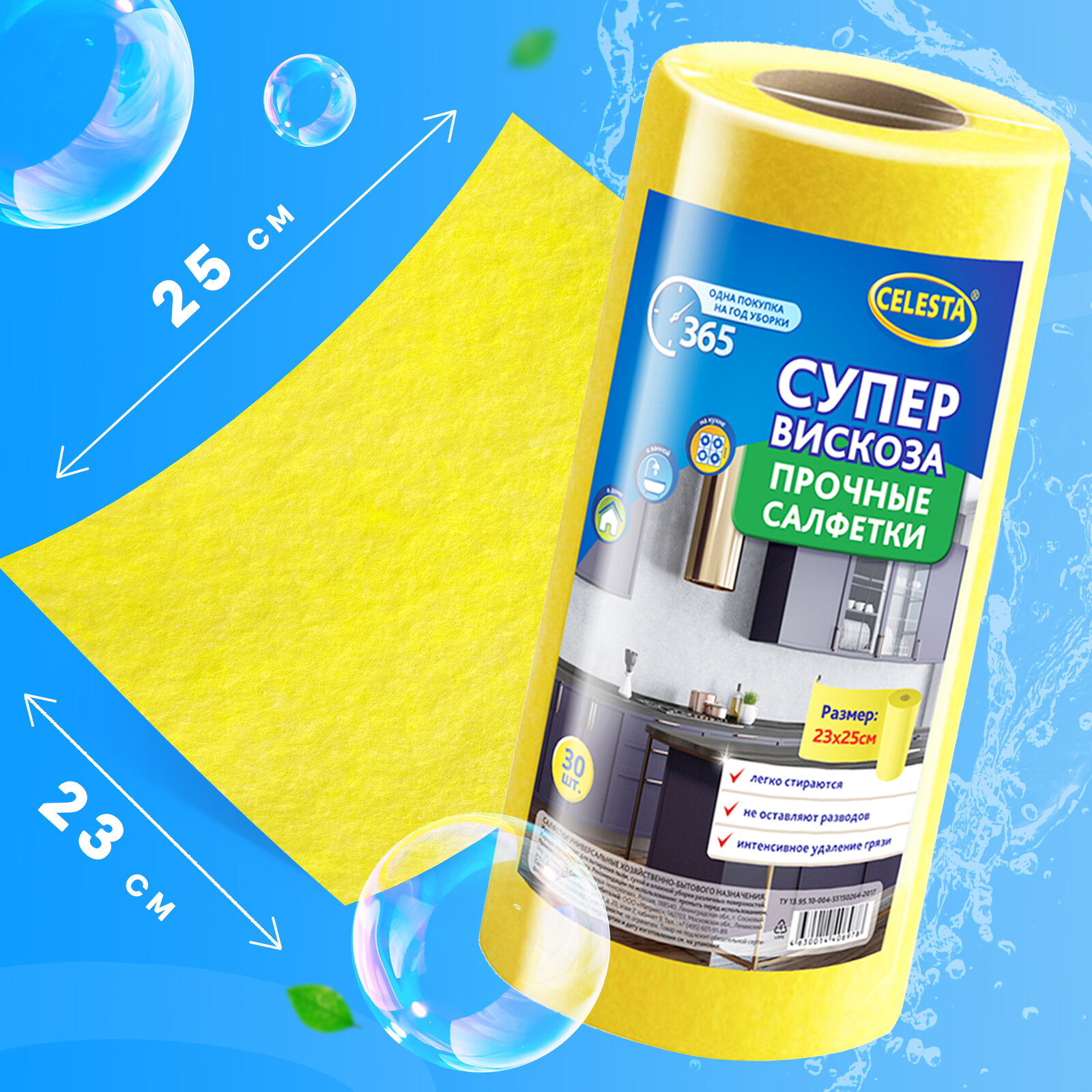 Салфетки для уборки Celesta, многоразовые, вискозные в рулоне для удаления пыли на кухне, 30 штук информация: