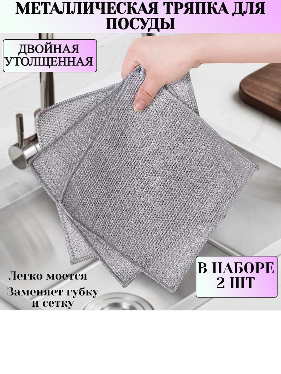 | Дополнительная информация | металлизированная тряпка для посуды; узелковая тряпка для посуды; металлизированная тряпка для посуды; узелковая сетка для посуды набор; для мытья посуды; сетка металлическая; губка металлическая для мытья посуды; для мытья кастрюль; для мытья сковороды; чистка посуды; щетка металлическая для посуды |