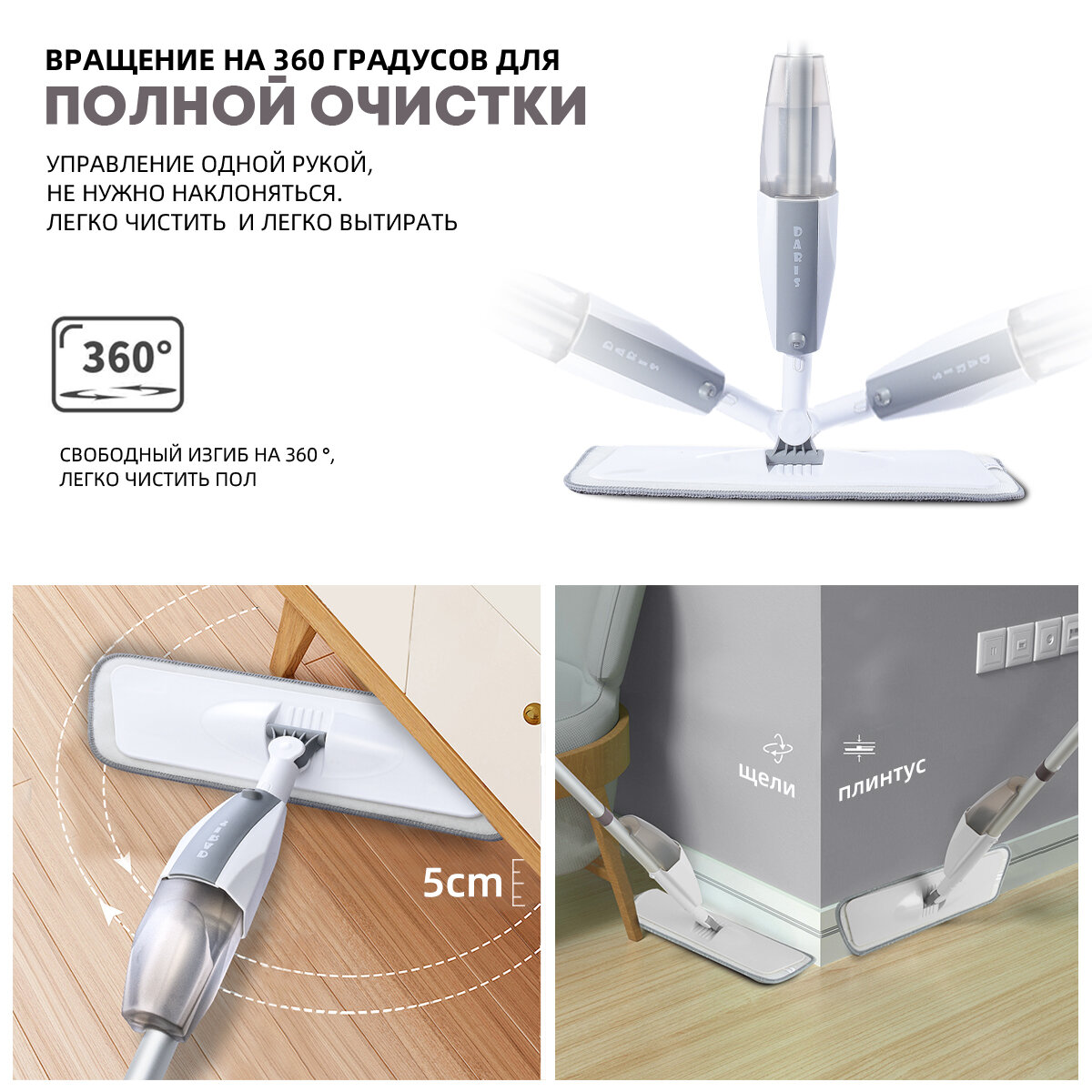 10 цен на DARIS Швабра с распылителем 300 мл+3 насадки из микрофибры, длина 120 см