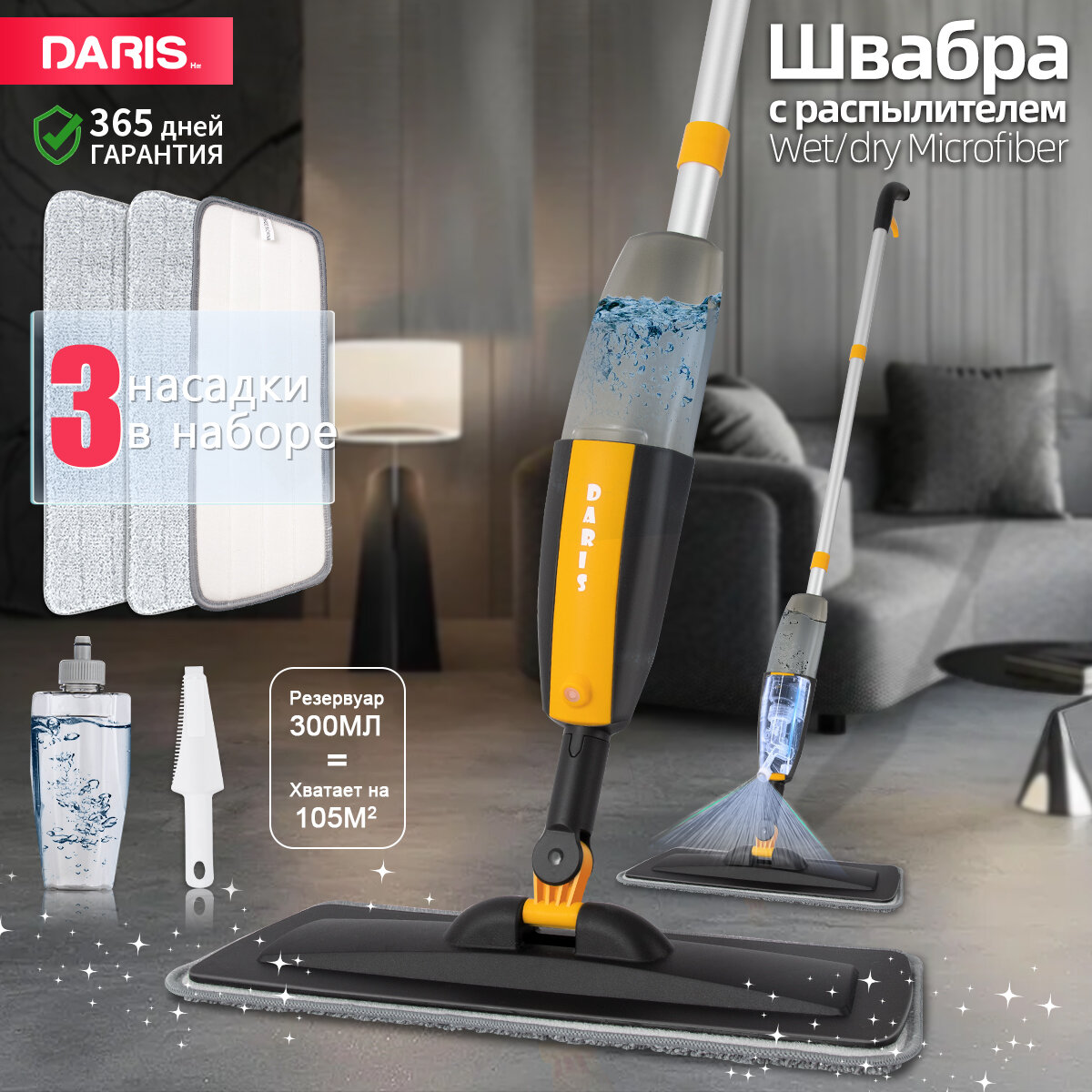 Швабра-распылитель DARIS, многоразовая, моющаяся, 3 насадки, бытовая, кухонная швабра для деревянного пола