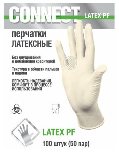 Перчатки смотровые латексные CONNECT, 50 пар (100 штук), размер L (большие), -