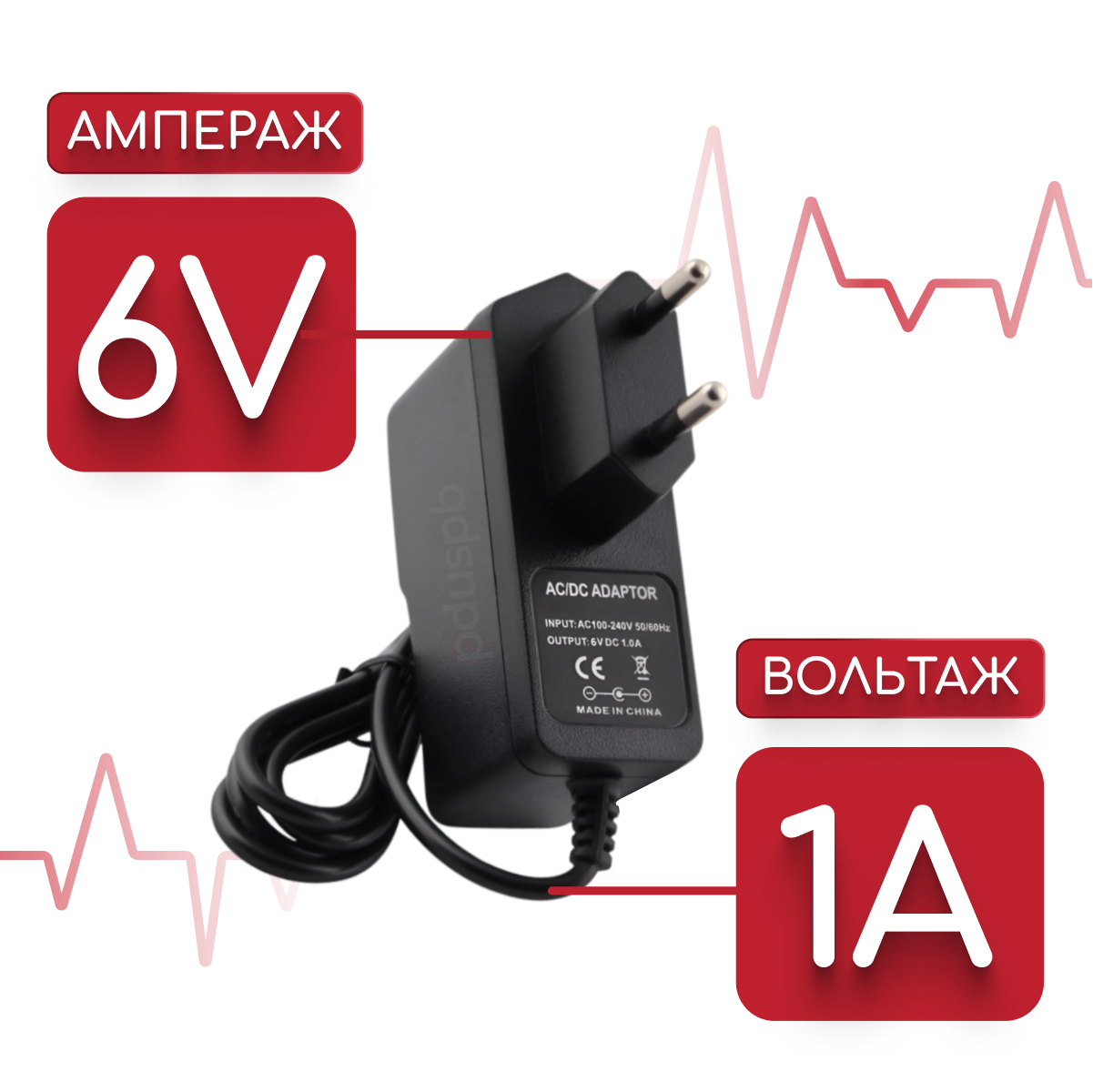 10 цен на Адаптер для тонометра и ингалятора Microlife 6V 1A 5.5х2.5 мм с зажимом