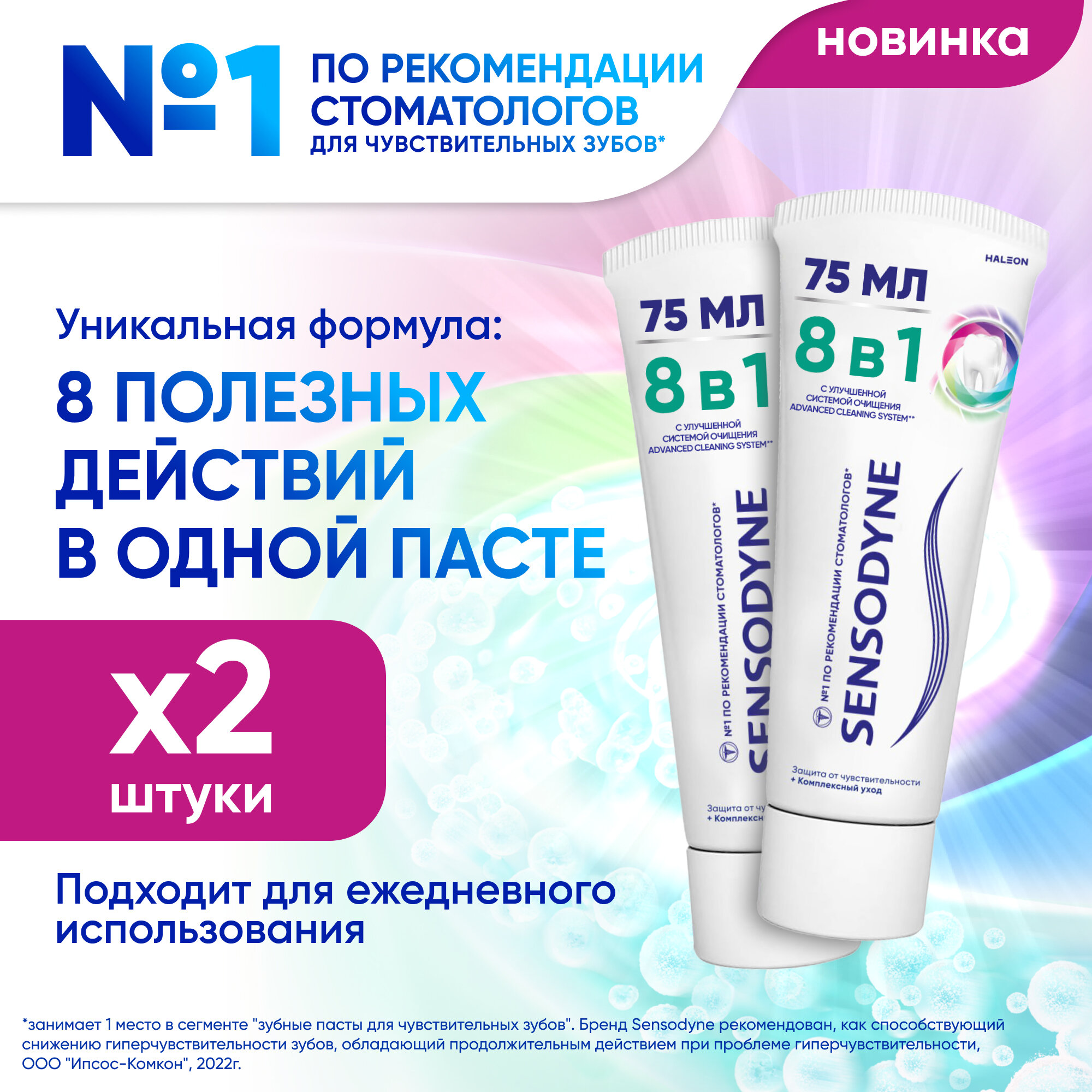 Зубная паста Sensodyne Комплексный уход 8 в 1, для чувствительных зубов, 75 мл, 2 штуки информация: