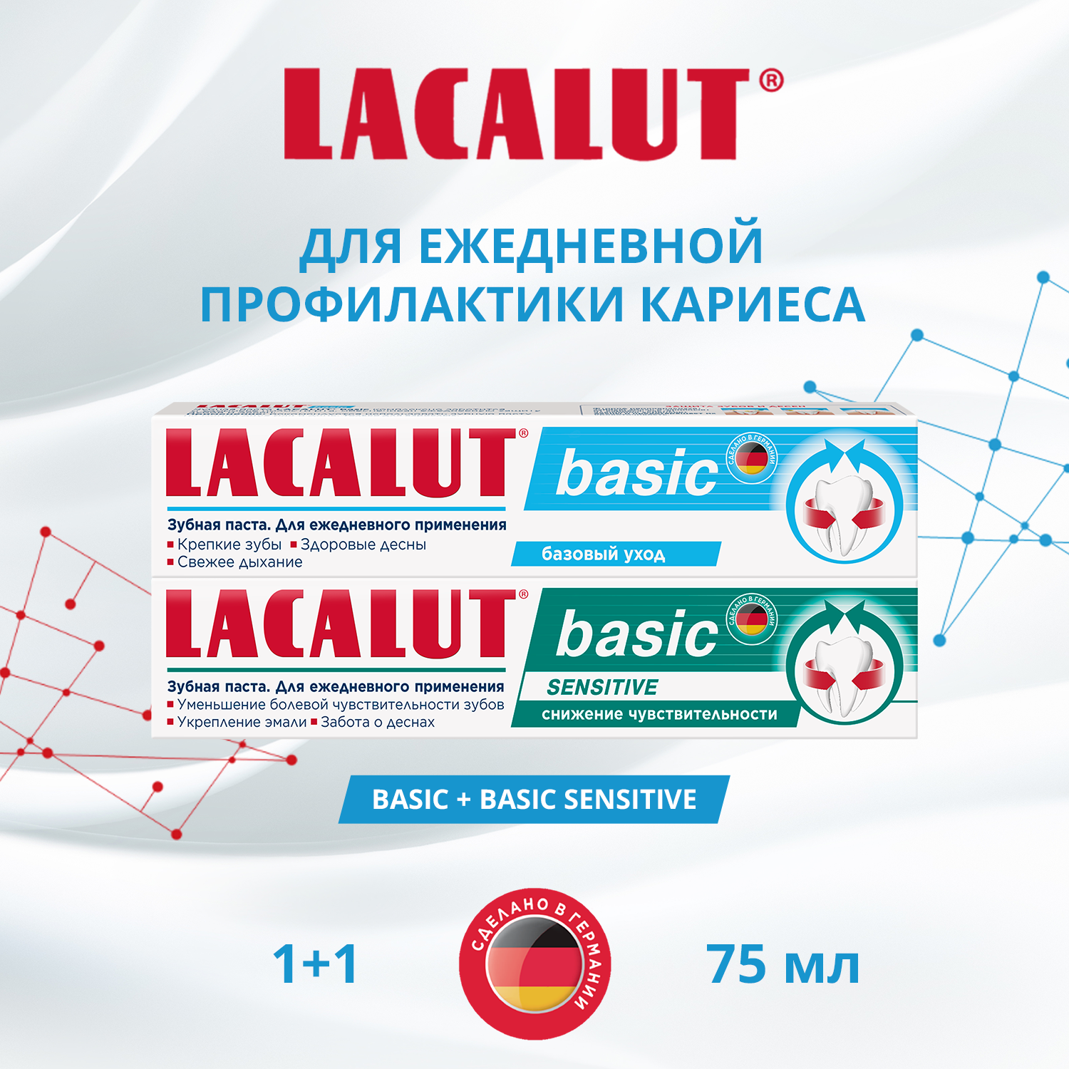 10 цен на Lacalut basic sensitive зубная паста, 75 мл + Lacalut basic зубная паста, 75 мл , набор